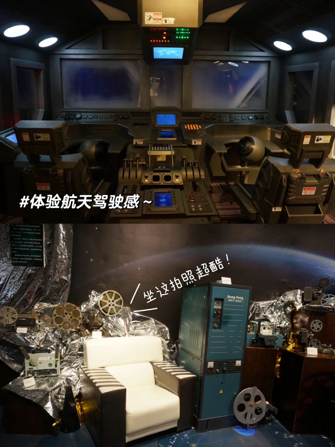 2⃣电梯上二楼,观景台拍红色城堡,天气好超出片!幕帷之谜里面是放电影的,不免费哈~拾光里进去有售卖文创产品和咖啡,还可以盖章!49买一个集章文蝶手册就可以盖最全40多个章,绝对爱集章的福音!拾光互动区有火星探险历程,各种航天模型,还有航天VR体验和VR游戏体验50一次~出口在咖啡前台后边哦~