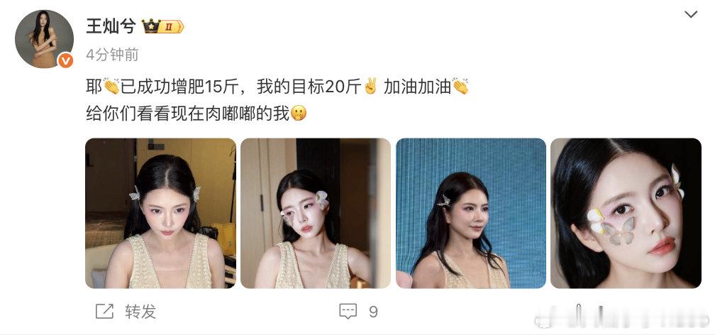 【】 11月11日,杜淳妻子 发文:“耶?已成功增肥15斤,我的目标20斤✌️ 加油加油?”。 此前她曾自曝因繁忙和焦虑患上肠易激综合征,一度暴瘦至79斤。