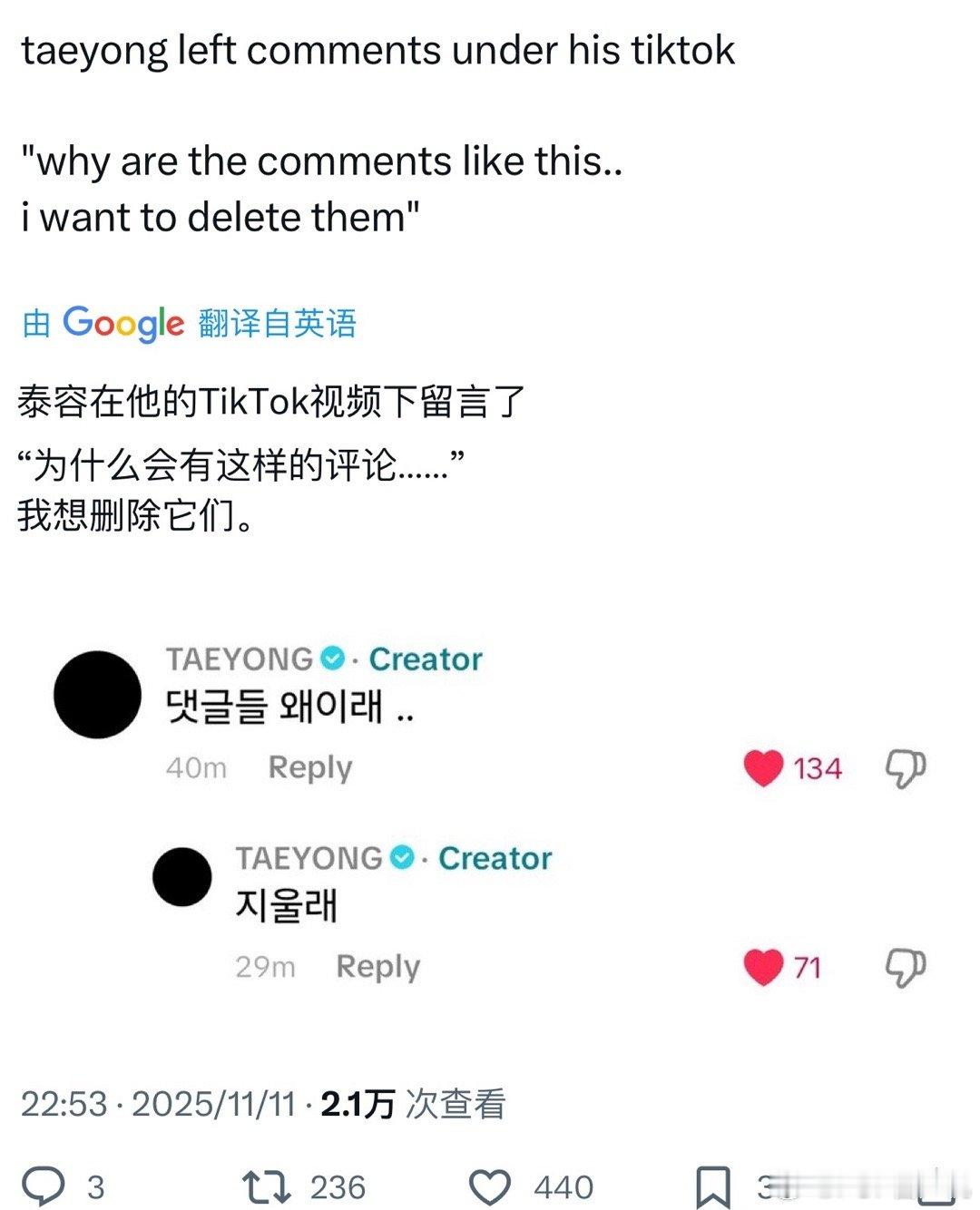 李泰容在最新发布的洋抖留言,不知道是否因为看到了这样的评论