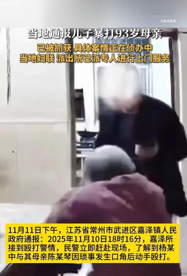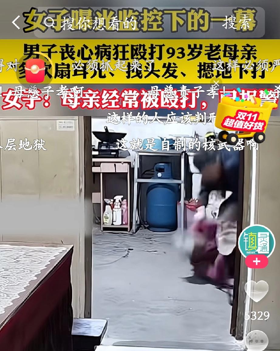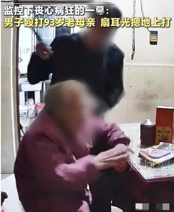 一男子殴打93岁母亲的视频叫人触目惊心。在头部眼部乱扇,扯头发,用脚踢,最后将老人打倒在地。老人疼得哇哇直叫,那声音听起来撕心裂肺。男子边打边骂,至于骂什么,由于是方言听不懂,肯定是脏话。93岁的高龄了,哪能扛得住自己亲生儿子的百般殴打辱骂。这名男子对母亲实施家暴是家常便饭,他妹妹敢怒不敢言,不得已才安装监控记录下这令人发指的一幕。这名男子如此卑劣可恶行为,会耳濡目染影响自己子女对他的态度的。孝顺还生孝顺子,忤逆还生忤逆儿!不信但看檐中水,点点滴在旧窝池!以上谆谆教导就是这个道理。