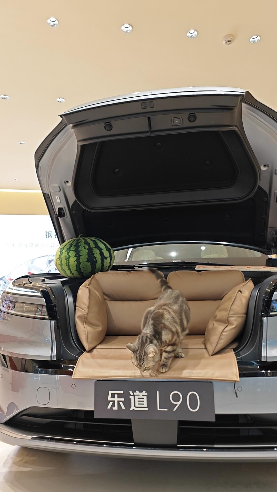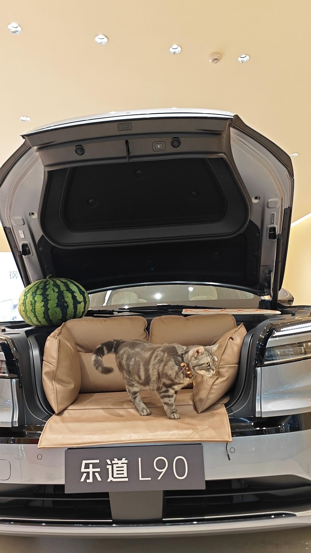 我愿称之为“乐道 L90 前备舱沙发最好的拍照主角”!!乐道 L90 前备舱的拍照最佳主角来了这只猫猫是后面步行街一个麻辣烫门店老板的猫因为这小咪认识 居然来她上班的门店找她玩来了好神奇