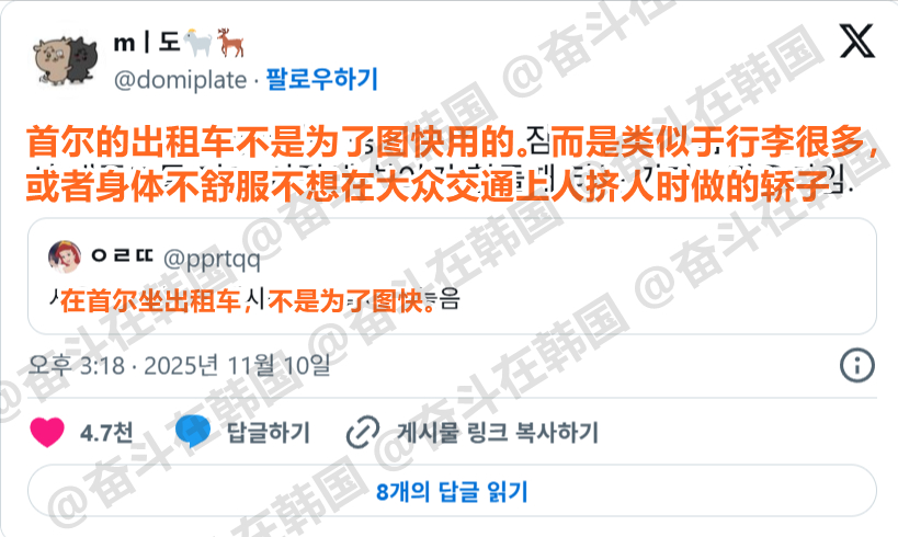 冷知识:在韩国首尔坐出租车,不是为了图快。
