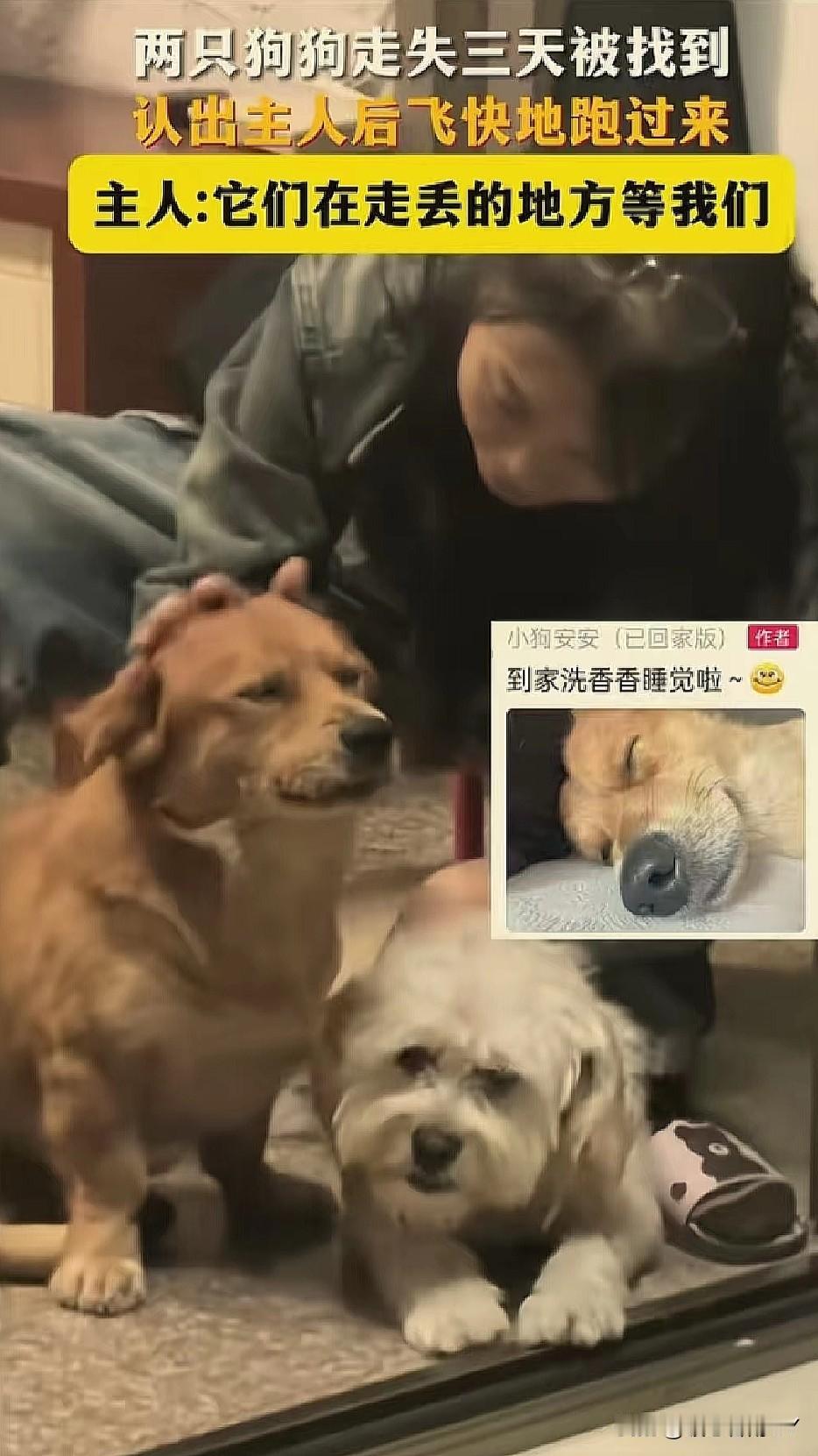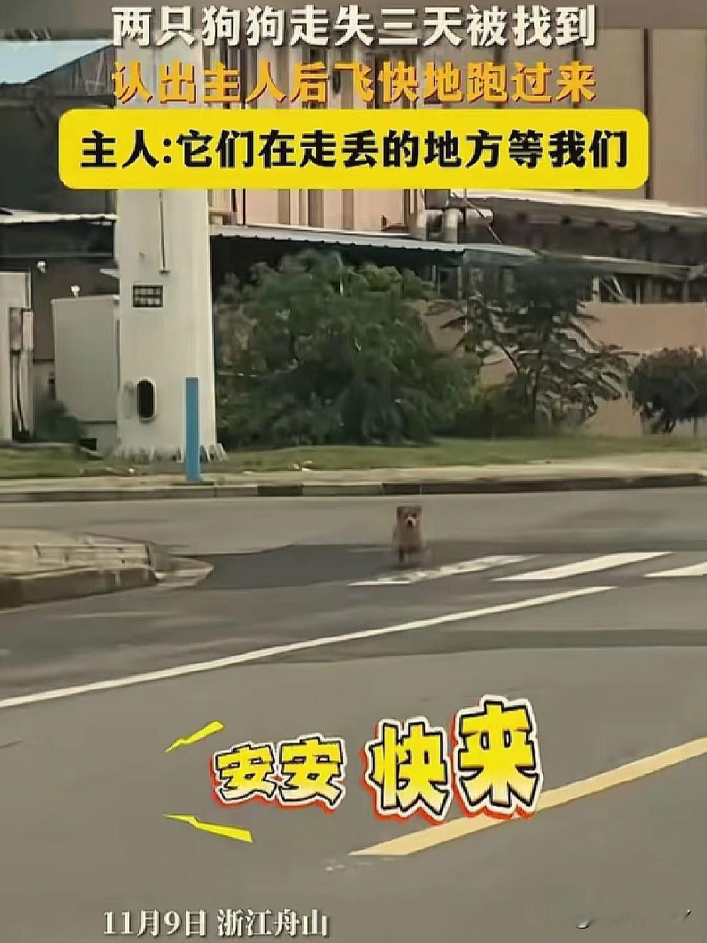 狗狗三天在原地苦等,重逢时的奔跑看哭了谁? 11月9日,浙江舟山,两只狗狗走失三天,竟始终守在走丢的地方等待主人。 当主人出现,名叫“安安”的田园狗狗先是愣了一下,似乎不敢相信,随即反应过来,疯了似的朝主人飞奔而来,那小短腿跑得飞快,尾巴似乎快要摇断了。 另一只狗狗也与主人紧紧相依。它们走失的三天里,该有多焦急地盼着主人出现啊! 看着狗狗重逢时的激动模样,真的又心疼又感动。 这双向奔赴的爱,太让人动容了。 愿所有毛孩子都能平安相伴主人左右,永不走散。