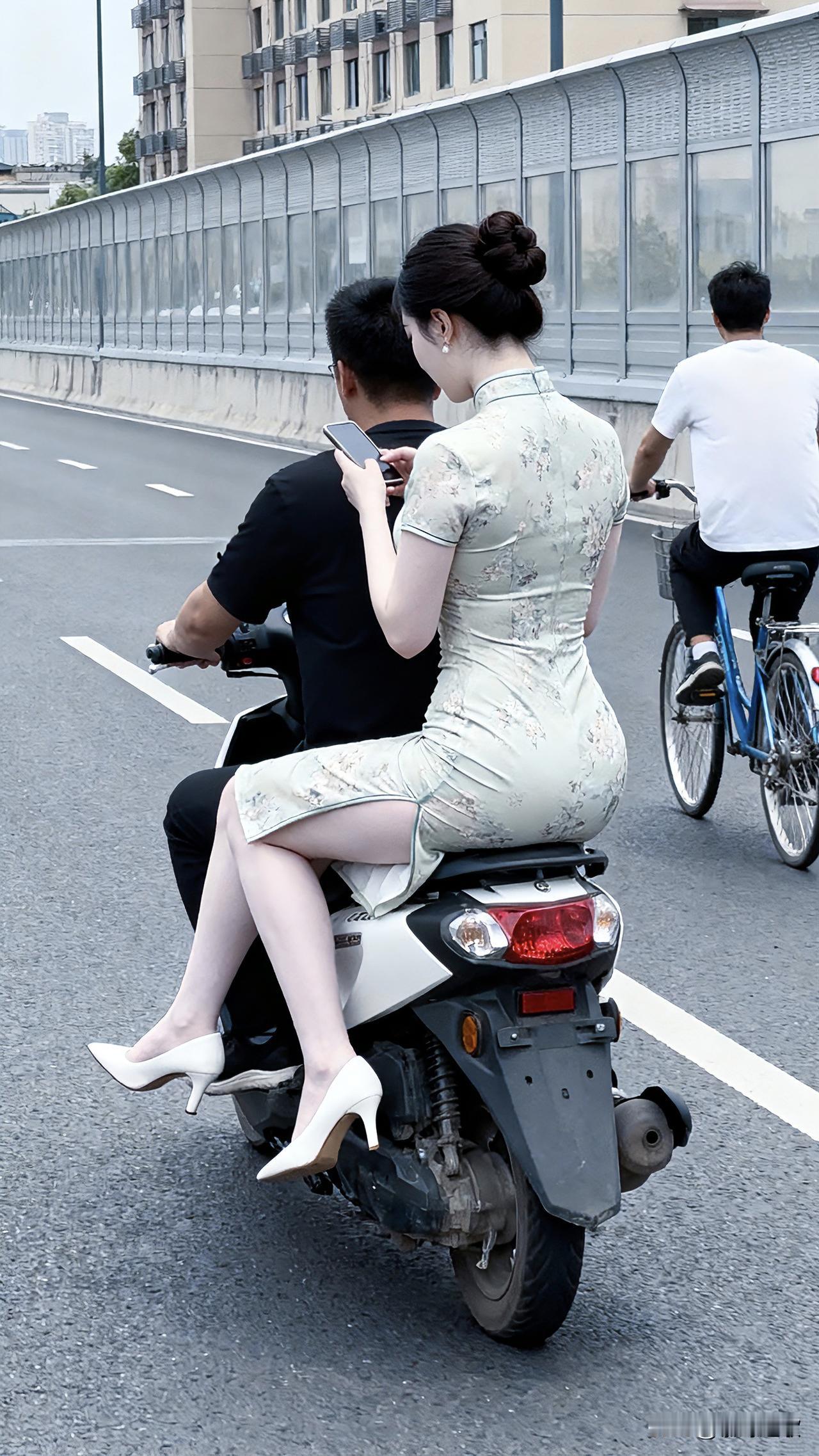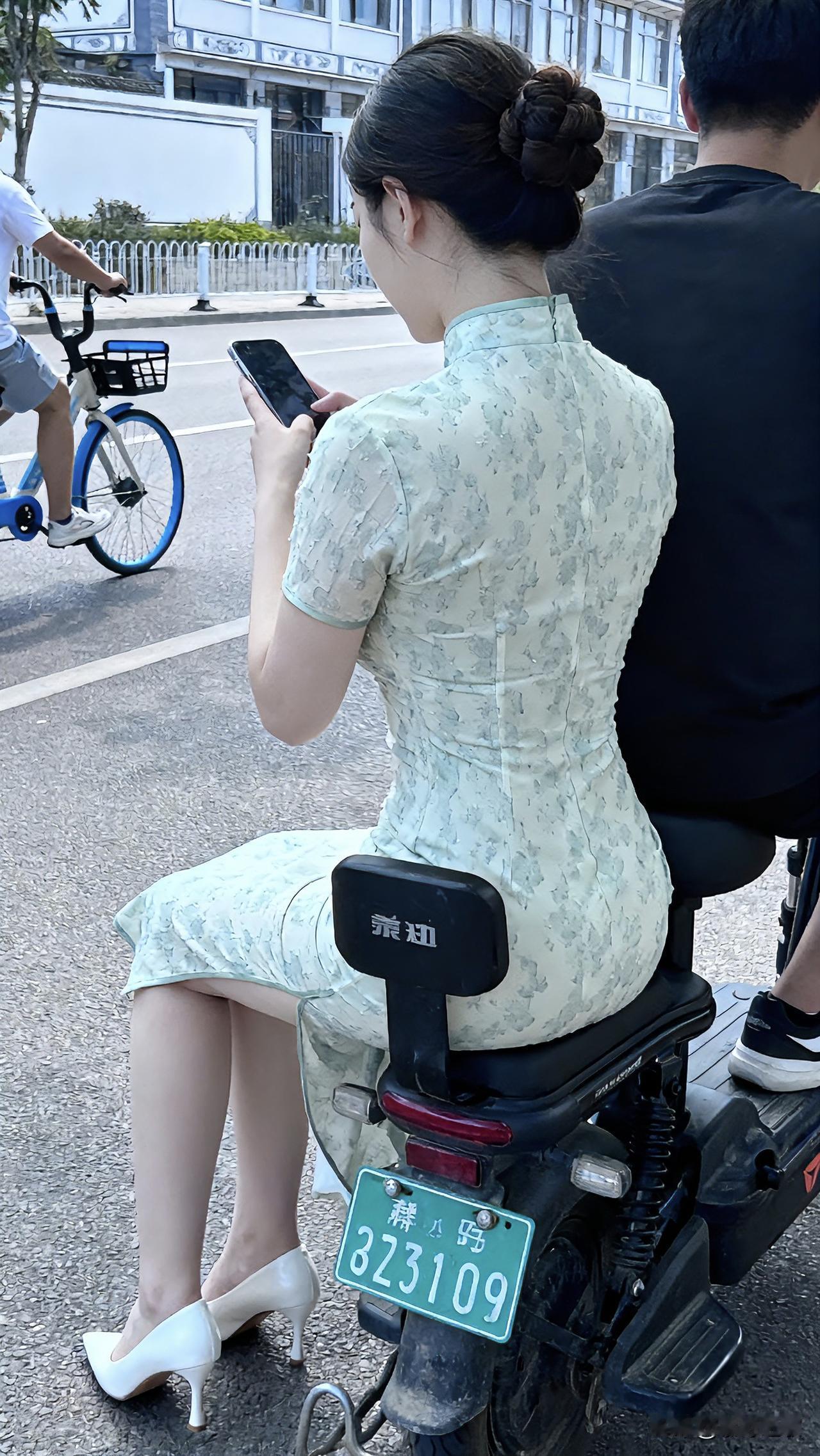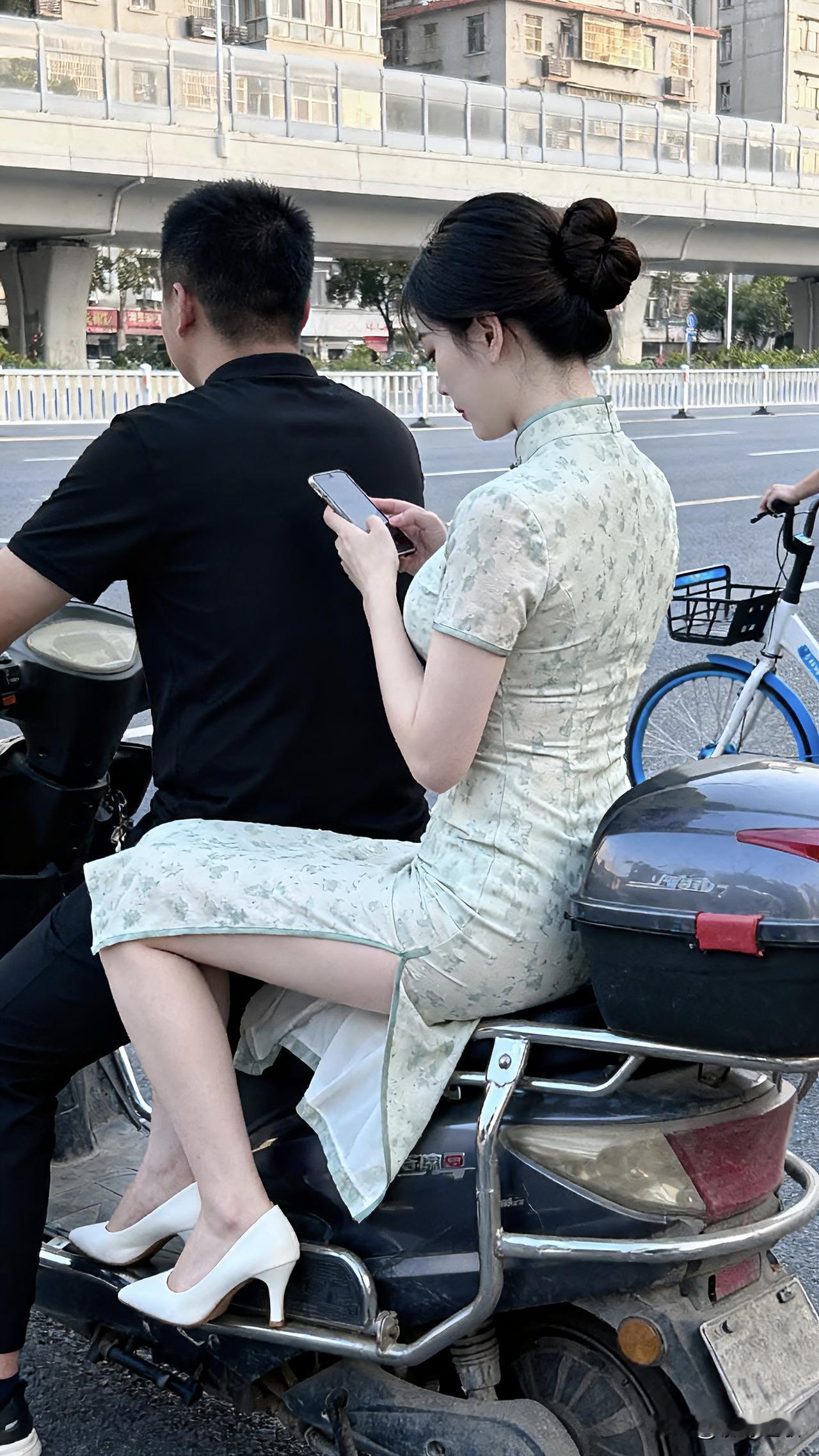 当旗袍遇上电动车:她的坐姿,美成了城市的一道光 你见过这样的画面吗? 她穿着