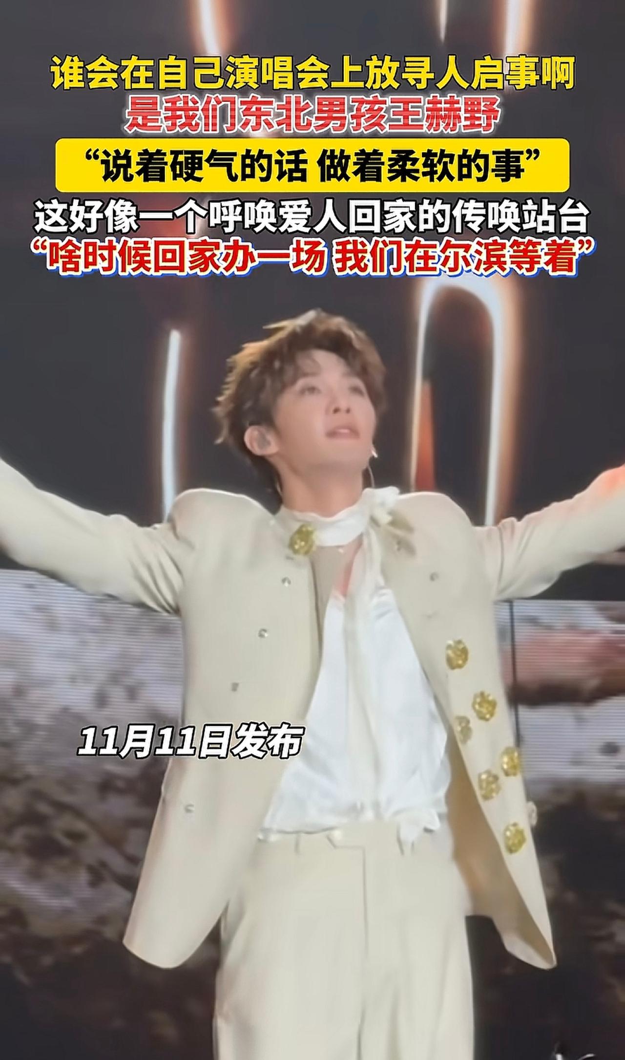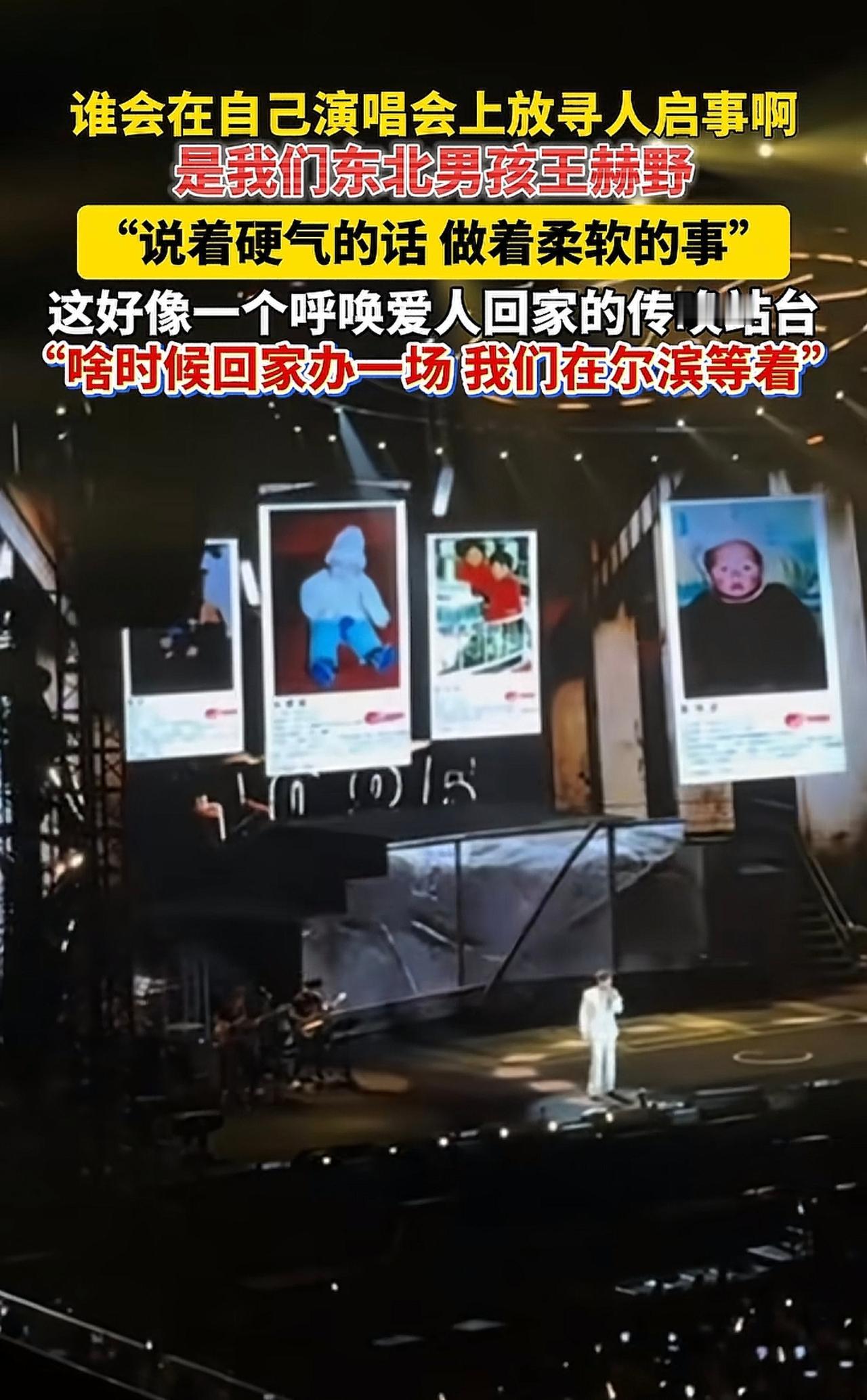 只有他做到了,演唱会上播放寻人启事,他就是王赫野,这才是公众人物该有的力量,不仅宣传自己的事业,还能帮更多的寻亲人士传递信息,有时候一个小小的善举,就可能成就一个家庭,希望可以影响更多的人去效仿,好样的!