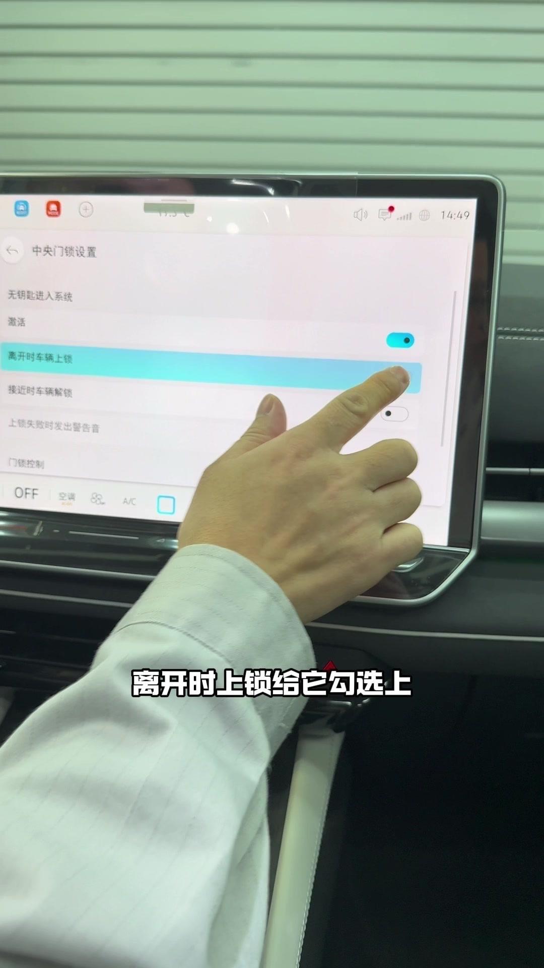 大众车靠近解锁离开自动上锁真方便!中控里找到车辆,点击后往这边滑到底,点击门锁。激活无钥匙进入,记得勾选接近时解锁和离开时上锁,上锁失败发出警告声音也打开,这样功能就都设置好啦,实用又省心~