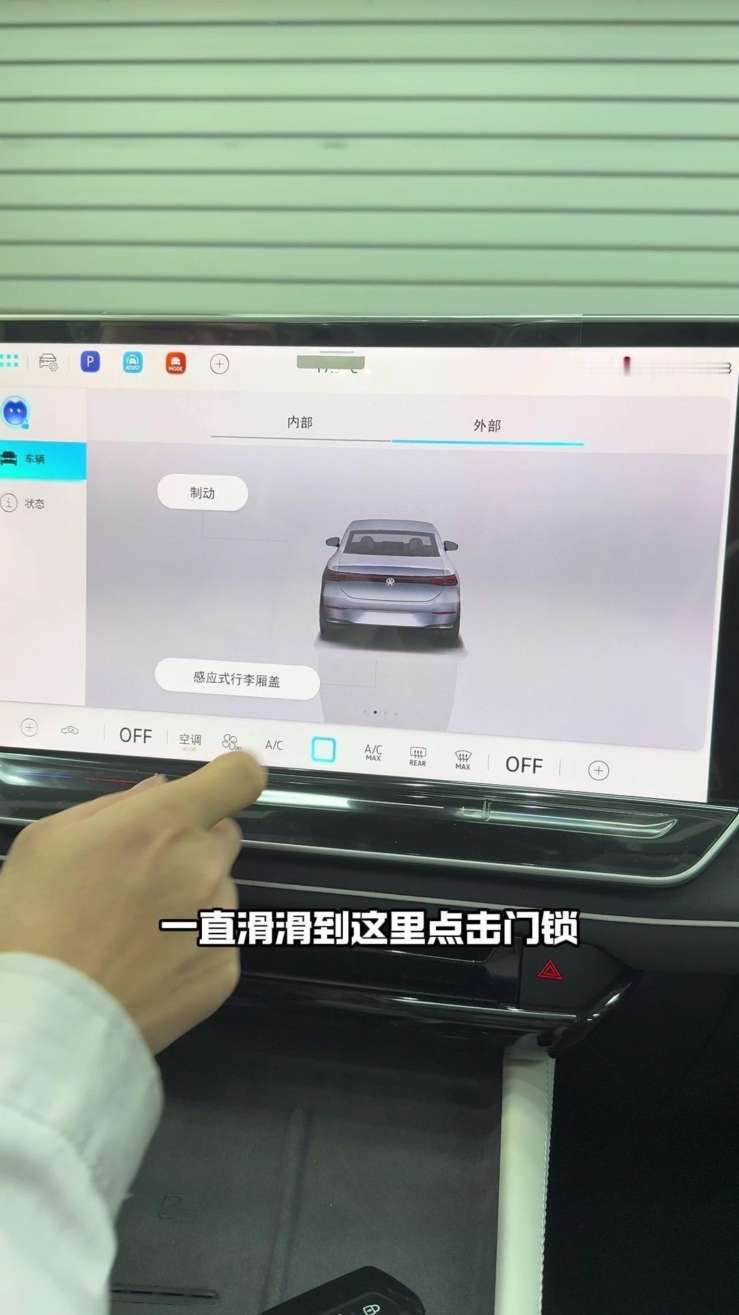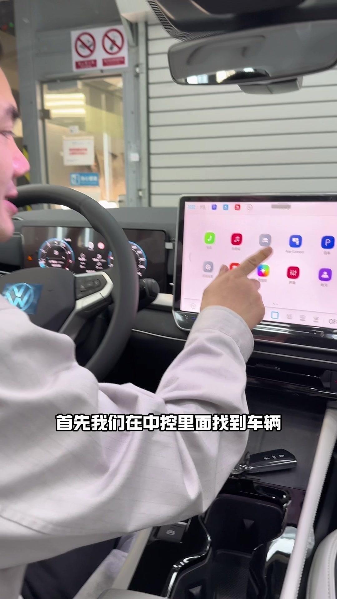 大众车靠近解锁离开自动上锁真方便!中控里找到车辆,点击后往这边滑到底,点击门锁。
