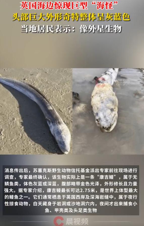 “巨型海怪!”11月11日报道,英国,西索塞克斯郡海滨城市沃辛的海滩可热闹了,大伙儿都在围观一个"大家伙",一条两米长的灰蓝色大鱼被冲上了岸!这可不是天天能见着的场面,连见多识广的老渔民都说头回见到这么大的。[得意] 专家确认这是条康吉鳗,别看它个头吓人,其实是个"害羞鬼",平时住在几十米深的海底,专挑晚上出来找小鱼小虾吃,要说它为啥会搁浅,专家猜可能是最近海上风浪太大,给冲迷糊了。 康吉鳗是一种体长修长、力量强大的无鳞鱼类,其体表呈灰蓝或深蓝色,腹部可见金色光泽,该物种是现存鳗鱼中体型最大者之一,据记载其最大体长可达2.75米。 其生态习性表现为典型夜行性掠食,常栖息于英国西岸的深海岩缝或洞穴中,白天隐匿,夜间捕食小型鱼类、甲壳类及头足类动物。 这条康吉鳗长得确实挺别致,灰蓝色的皮肤带着淡淡金光,在太阳底下还会反光,不过人家可不是外来客,它本来就是英国海域的"原住民",只不过平时住得远,难得来岸边串门。 野生动物保护站的工作人员提醒大家,要是以后在海边碰到这种"大块头",千万别自己动手,一定要打电话叫专业人士来处理。 这条“海怪”的真实身份揭晓后,在网络上同样引发了热议,网友们纷纷发表自己的看法,语气轻松又充满趣味。 “好家伙,我点进来之前真以为是哥斯拉上岸了,结果是个鳗鱼老哥?这体型也忒夸张了,够一大家子吃一个月了!” “我们的海洋里到底还藏着多少秘密?总觉得人类对深海的了解还不如火星,这次算是窥见了一角,感觉既神奇又有点害怕。” “作为沃辛人,看到这新闻第一反应是震惊,第二反应是骄傲!海域生态是真的好,才能吸引来这样的‘大家伙’。” “首先,希望科研人员能好好研究一下它,其次,它最后是怎么处理的?是原地自然分解,还是被妥善安葬了?强烈建议立个小牌子,纪念这位意外让我们大开眼界的深海来客。” “看着图片吓我一跳,还以为是啥史前生物复活了,结果专家一科普,心里立马踏实了,原来就是条大号的鱼嘛!所以说,知识就是力量,能赶走胡思乱想。” “我要是遛狗时突然看到这么个大家伙,估计得愣在原地三秒钟,我家那只傻狗肯定冲上去狂吠,然后被吓得躲到我身后,那场面想想就好笑。” “这件事最重要的意义是给我们提了个醒:海洋生态真的很脆弱也很神奇,希望这次发现能促进大家对本地海洋生物的关心,而不只是看个热闹。” “查了一下,康吉鳗的肉据说还挺好吃的?有没有懂行的朋友出来说说,这种被冲上岸的能拿回家烹饪吗?还是说受法律保护不能动?” “这修长的身形,这光滑的皮肤……难道没有人觉得它很像《海底总动员》里那个总在黑暗中发光的邪恶大鱼吗?瞬间有画面感了!” 如果你当时在现场,亲眼看到这个两米长的“深海来客”,你的第一反应会是什么?是会立刻掏出手机拍照,还是会好奇地靠近观察?快来评论区说说你的想法吧! 信源:潇湘晨报