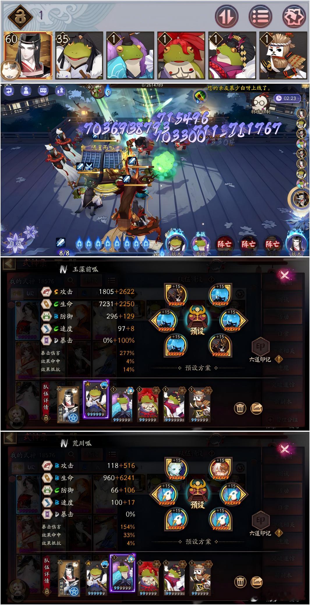【呱呱画室】保姆级玩法+阵容攻略时间:11.12~11.18①5呱阵容,每局得15颜料。每日2局打满,5天拿完奖励②无呱阵容,每局得10颜料。每日3局打满,5天拿完奖励■文字码:①5呱:|TA|dbbb8e9d461b57c84cbb875b1c7ba302②无呱|TA|7bbf3648fd7cc945cfd049f1ebee9c25呱太阵容:玉藻前呱(35~40级)+任意4呱(星级随意)玉藻前呱:破荒,满暴堆输出。速度任意队伍里带一个火灵御魂晴明可带星、灭镇墓兽(玉藻前呱、晴明妖术,其余锁普攻)无呱阵容:千姬>那美>sp缘>150>128、天照、岳涂佛千:速生生,堆生命元夜那美:速命暴,满暴堆命中火灵sp缘:xx暴/爆,满暴堆爆伤狂土照:攻攻暴/爆,满暴堆输出散件岳:防防防,堆防御晴明可带星、灭属性镇墓兽(全员妖术,挂机)