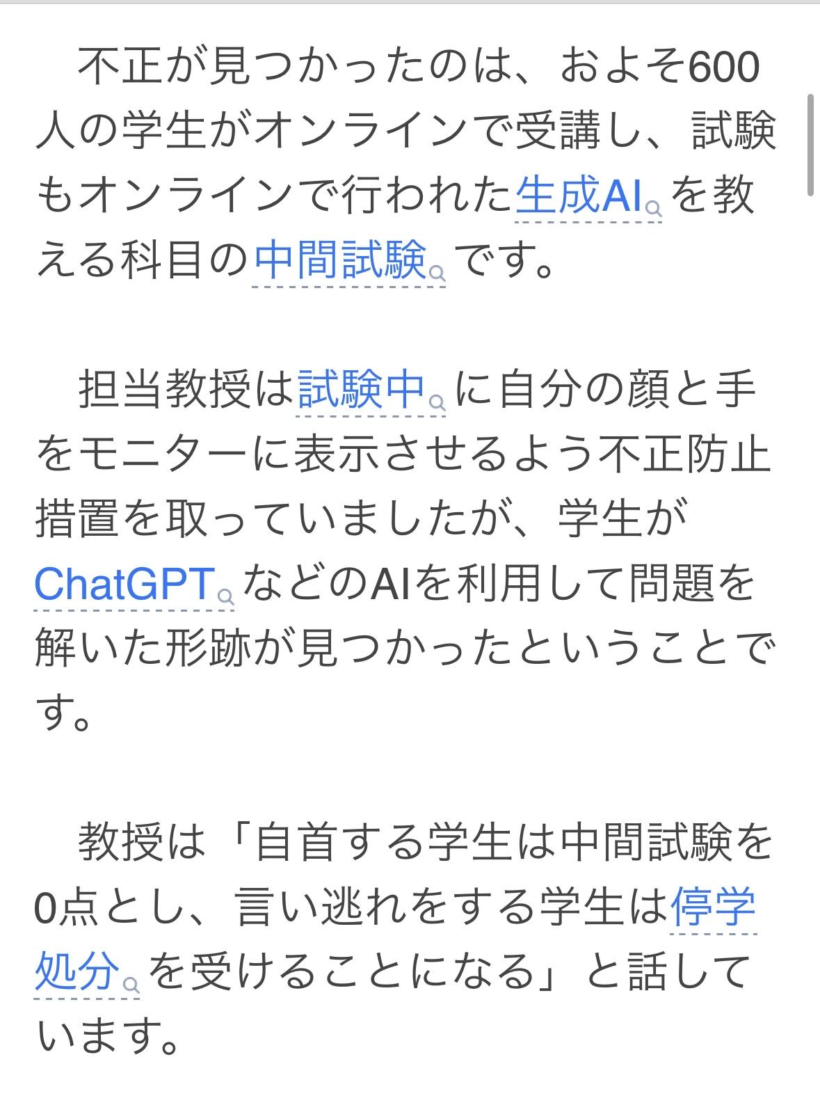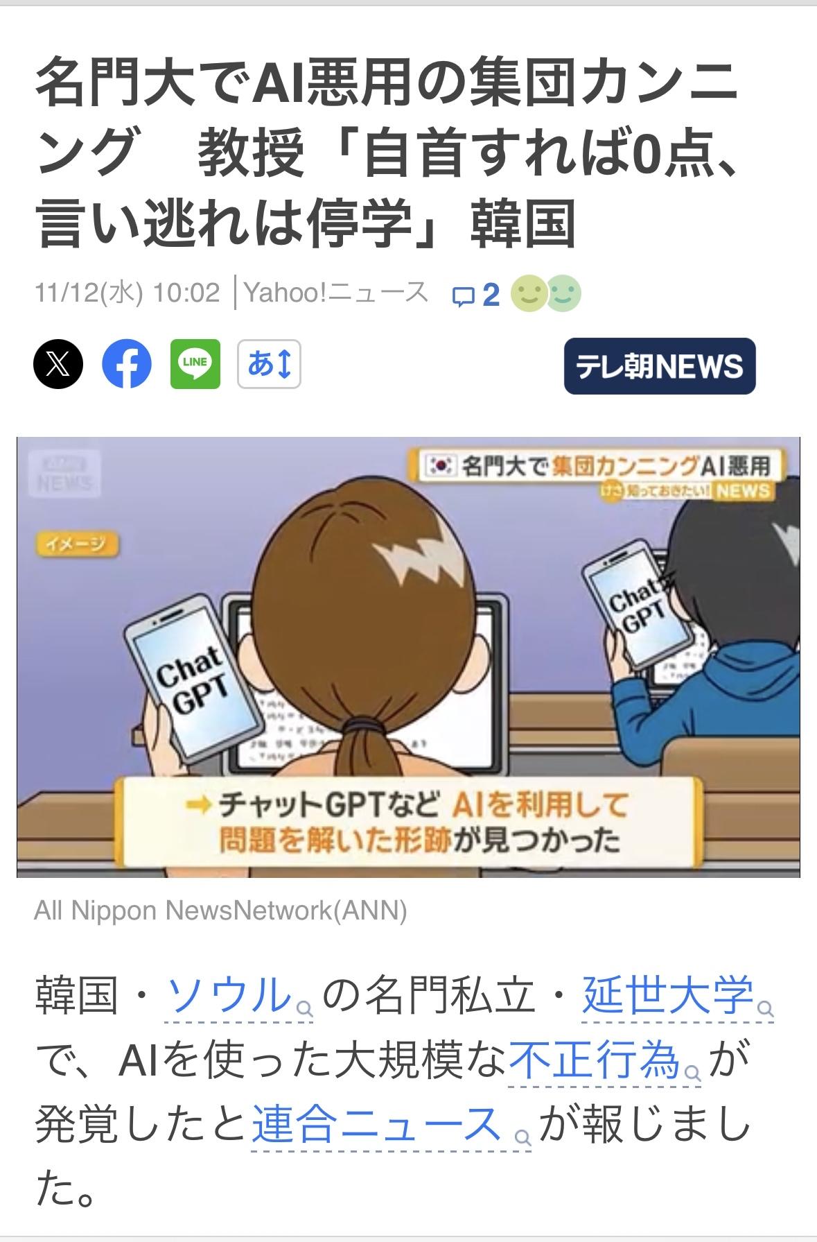 韩国首尔延世大学600名学生参加在线期中考试,考试期间考生将脸和手显示在屏幕上,但还是发现有学生使用ChatGPT之类的人工智能程序来解答问题。 教授表示:自首给零分,找借口逃避将被停学。