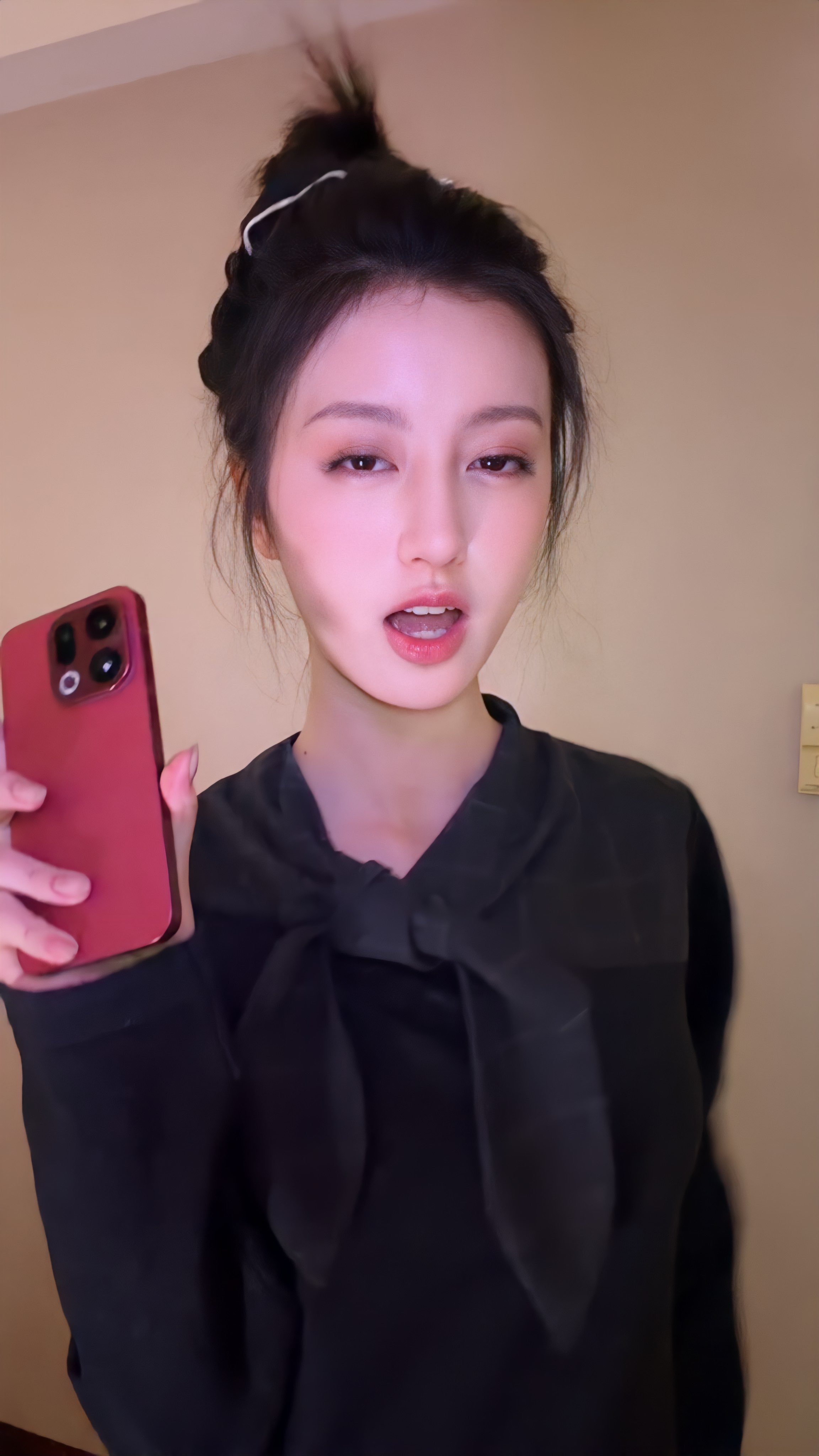 刘亦菲你要注意,背面的镜子给你反光了。