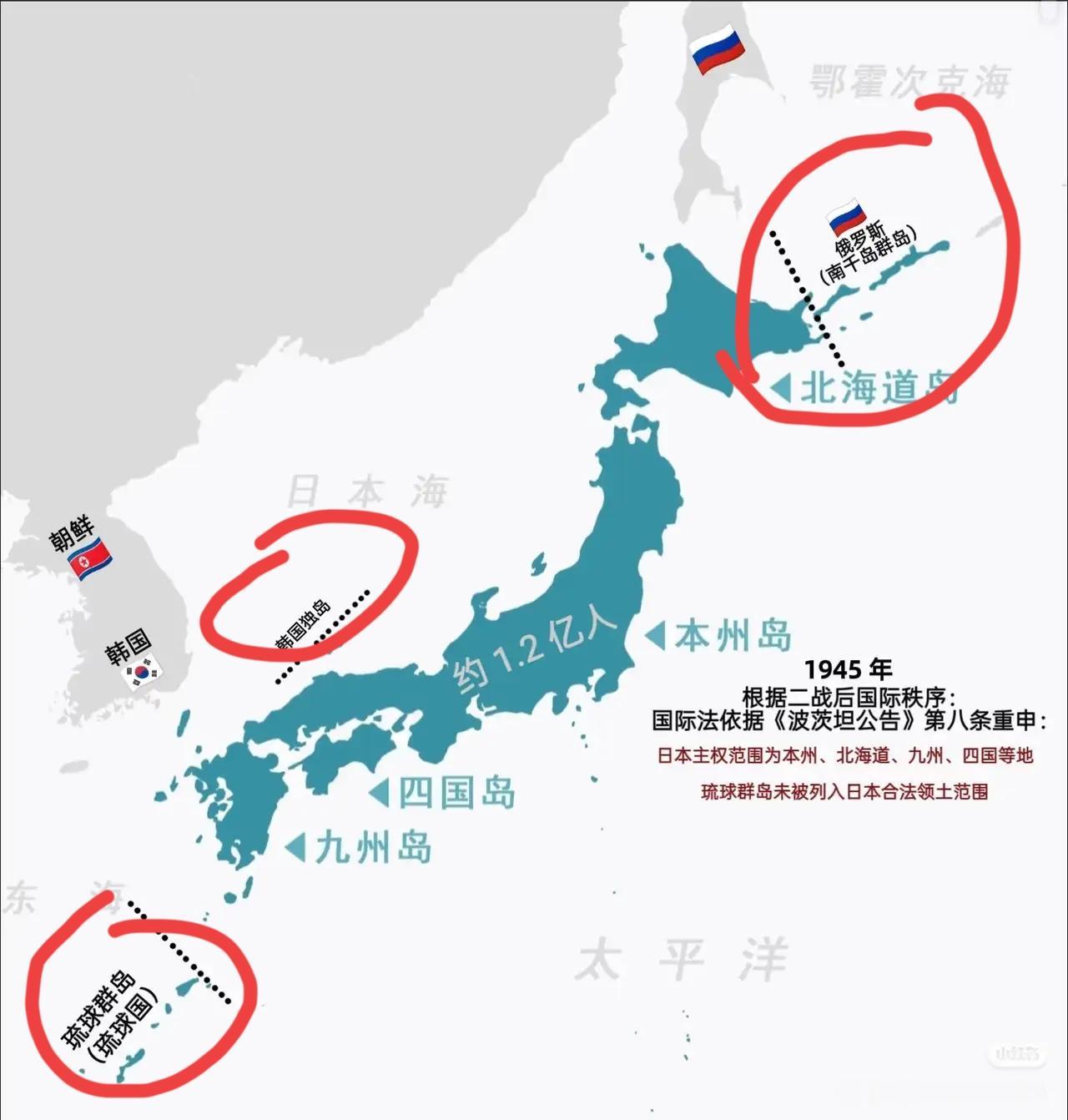 现在全球已经有了更精确的查勘技术,对于倭倭,依照二战战后规则四岛也是可以清晰缩紧边界的