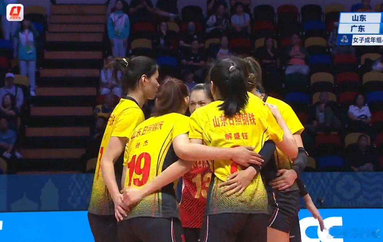 女排成年组小组赛B组:山东队 3-0(25-14/25-23/25-22) 广东队广东队在第三局中局阶段一度领先的情况下没能一鼓作气,山东队直落三局击败广东队,5战全胜。14日19:00山东队对阵福建队遭遇2连败的广东队1胜3负,小组赛还有两场,14日16:00 广东队对阵浙江队
