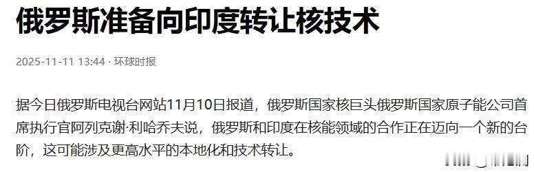 俄媒爆料,俄罗斯绕过中美向印度转让核技术,并且这次俄核电巨头同意给的还是“独家机密”——漂浮核电站,知情人士透露:俄印在核能领域的合作迈向了新一个台阶,并且设计更高水平的本土化和技术转让! 大多数人可能都没见过漂浮核电站,这不是普通意义上的发电站,而是能在水上“游走”的发电厂。它可以被船拖到沿海的任何角落,提供持续电力,无论是偏远小镇还是海上工程都能用上。 全球能搞定这种技术的国家屈指可数,以前俄罗斯对外核合作顶多只移交些常规设备,这次像是把自家最核心的秘密搬上了台面。 美国虽然与印度也有核领域往来,但各种限制条件一大堆,既要技术不全,又要附加政治要求。至于中国,合作的尺度也一直把得很紧,不轻易谈核心转让。 相比之下,这次俄罗斯选择独辟蹊径,绕过了传统大国模式,直接把技术和生产手把手交到印度人自己的工厂和团队里。 这不是简单的买卖设备,而是从源头培养出完整的本土化配套系统,让印度以后用起核能来不用再四处求人。 其实,俄罗斯和印度并非第一次在能源领域联手。从一开始建设核电站,到现在渗透到高端技术,本就是一步步积累下来的信任。 不难看出,俄罗斯这次押宝,是看中了印度庞大的市场和巨大的电力需求,也清楚在西方压力越来越大的大环境下,多一个能共同搞大项目的靠谱伙伴,手里的牌就硬不少。 对于印度来说,这不仅是补上沿海能源短板,更是被全球看到了一回。漂浮核电站技术的注入,能让印度在国际核能市场说话有底气,也为它争取到了更多的主动。 对俄罗斯来说,拿技术做纽带,把印度拖进了自己身后的大圈子,对未来在亚洲立足显然更有利。 这样的转让方式,打破了以往核能合作慢慢悠悠、层层设防的老规矩。俄罗斯的做法证明,有时候守着技术当宝贝不如合伙人多,带来的利益和影响力更实际。 中美之前在核领域一直保持主导地位,这次眼看俄罗斯带头创新,后续很有可能会影响全球范围内的核合作态势。 其实,在这场交易背后最重要的一点,并不是哪家掌握了什么绝活,而是谁真正敢拿出压箱底的本事来做朋友,用技术缝起实实在在的结盟。 俄印这次的合作早已超过了单纯的经济交易,而是把信任和利益交织成一张新的大网。这不只是俄罗斯的主动出击,也是在讲用什么样的手腕才能在大国之间走得更稳更远。