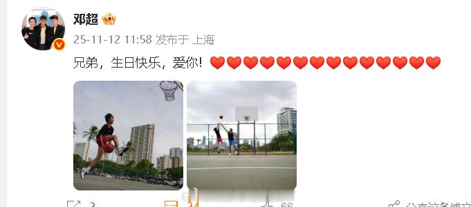邓超为等等庆生:“兄弟,生日快乐,爱你!”