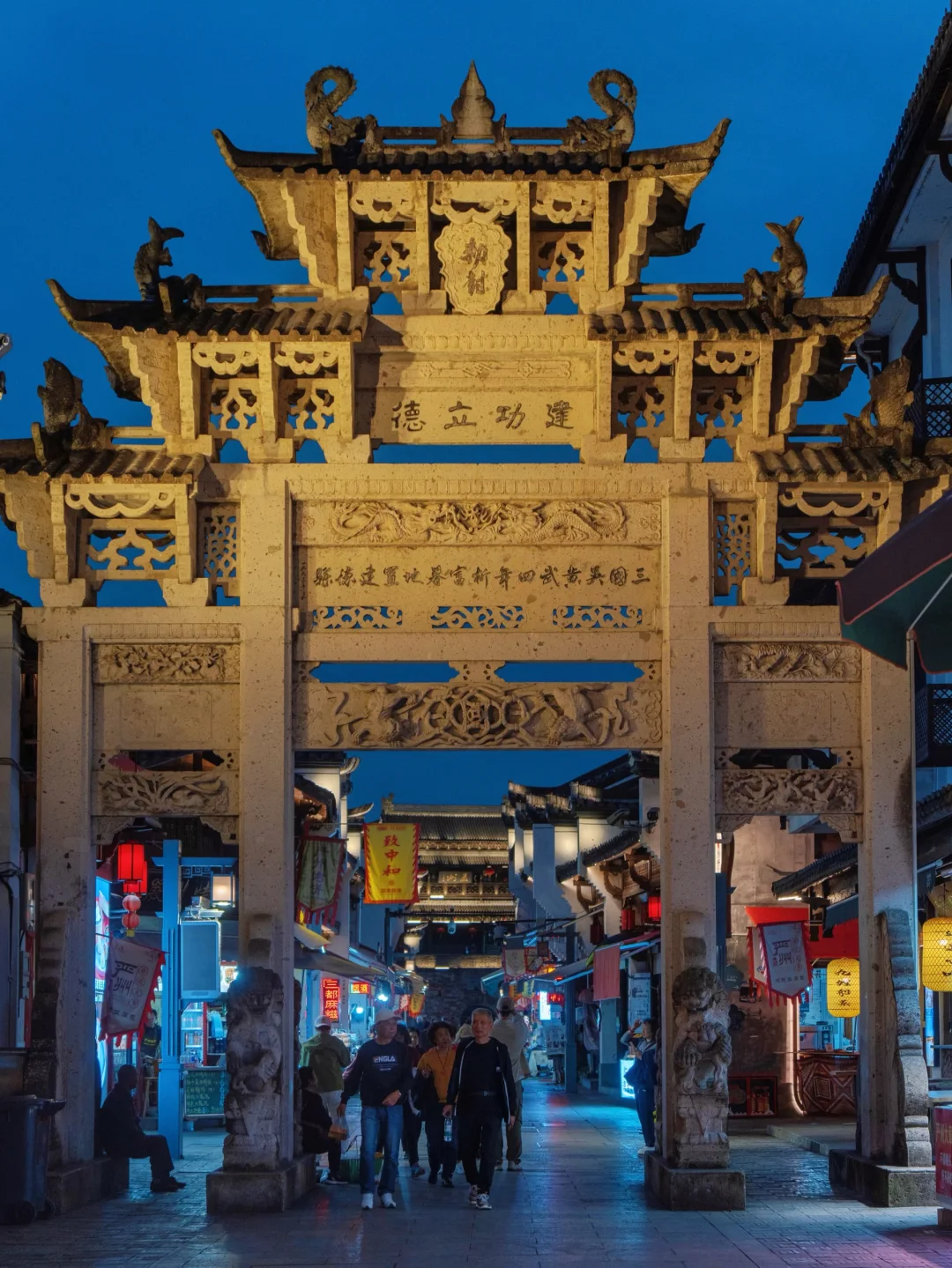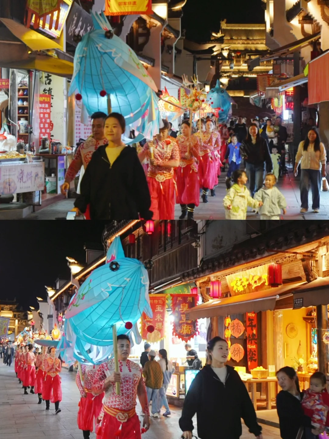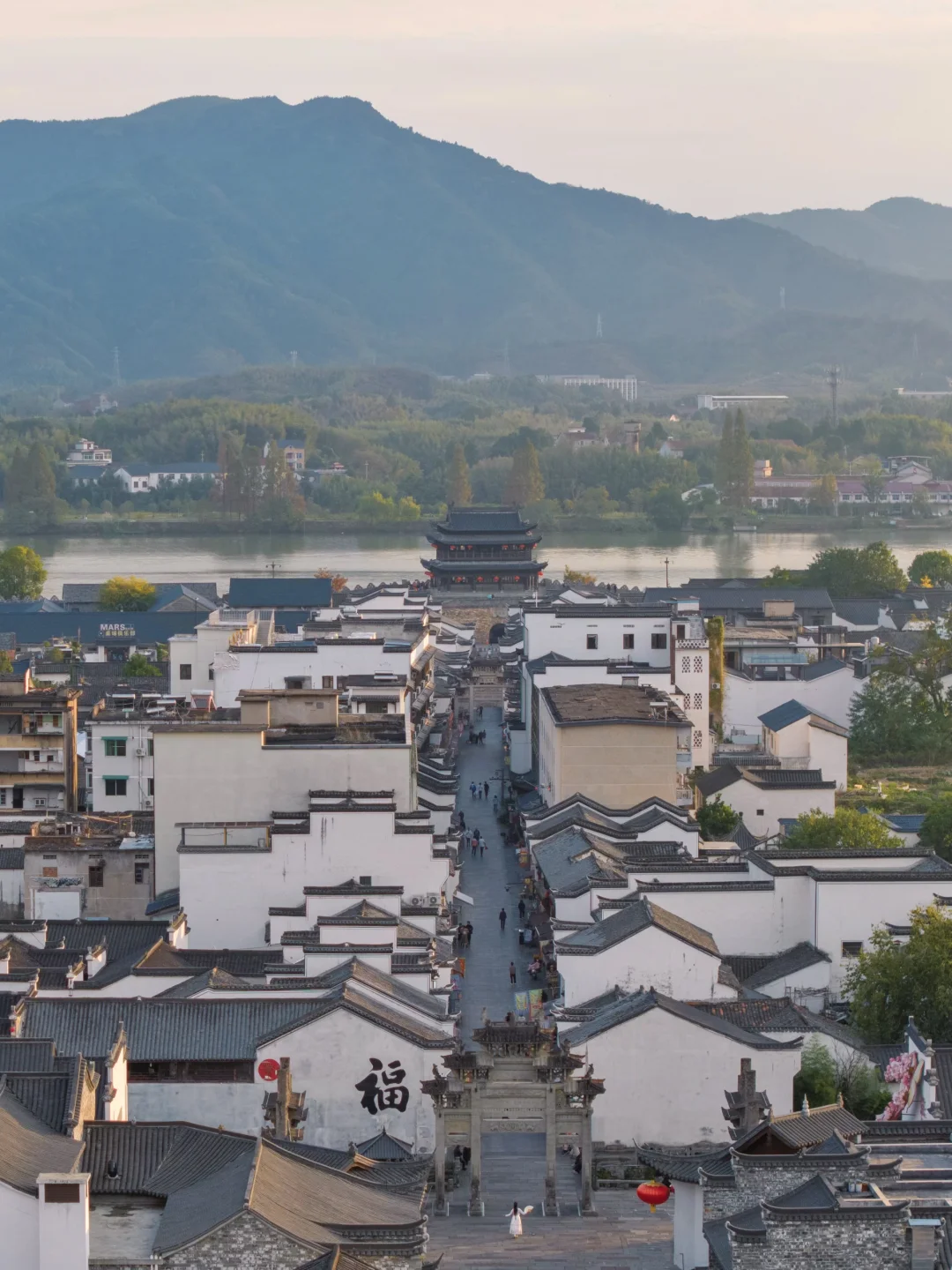 走上古城墙,能看到古城里层层叠叠的屋顶,走到背面还能看到新安江上来往的船只,古街上全天都有表演,周五六晚上还有虾灯巡游,热热闹闹过周末~