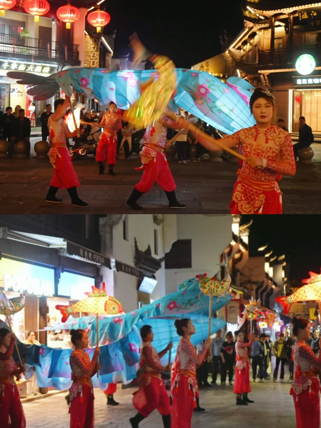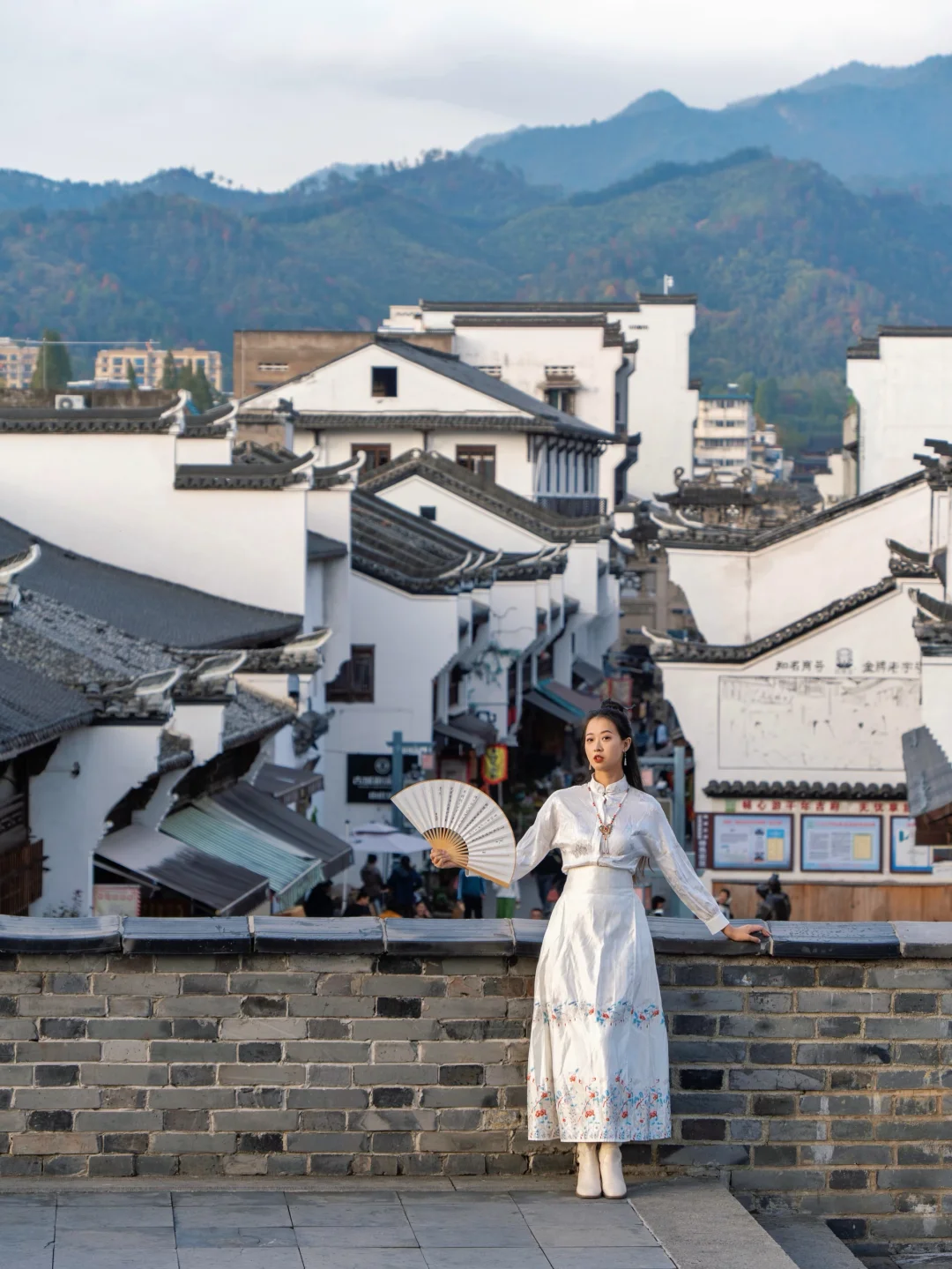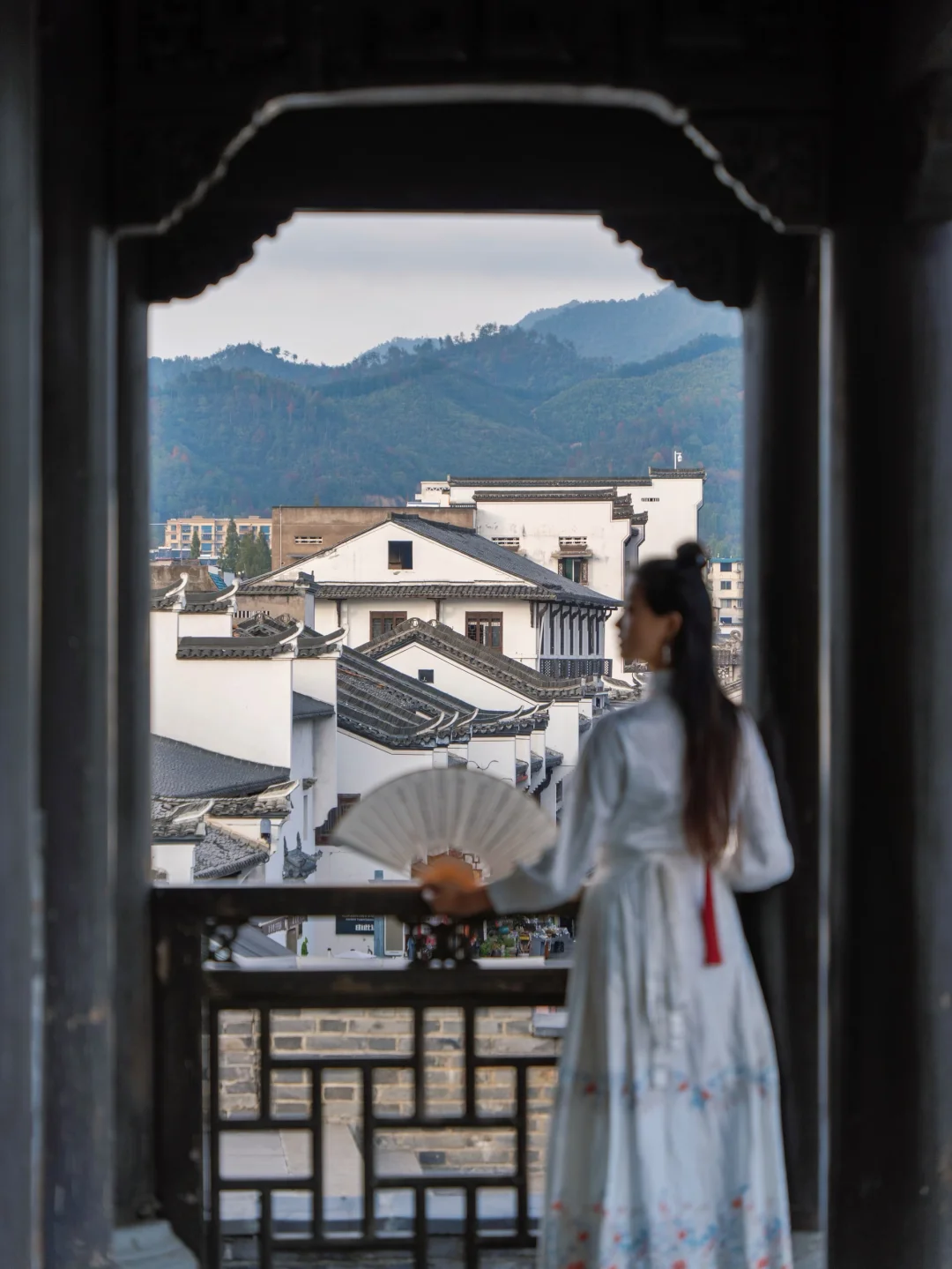走上古城墙,能看到古城里层层叠叠的屋顶,走到背面还能看到新安江上来往的船只,古街上全天都有表演,周五六晚上还有虾灯巡游,热热闹闹过周末~
