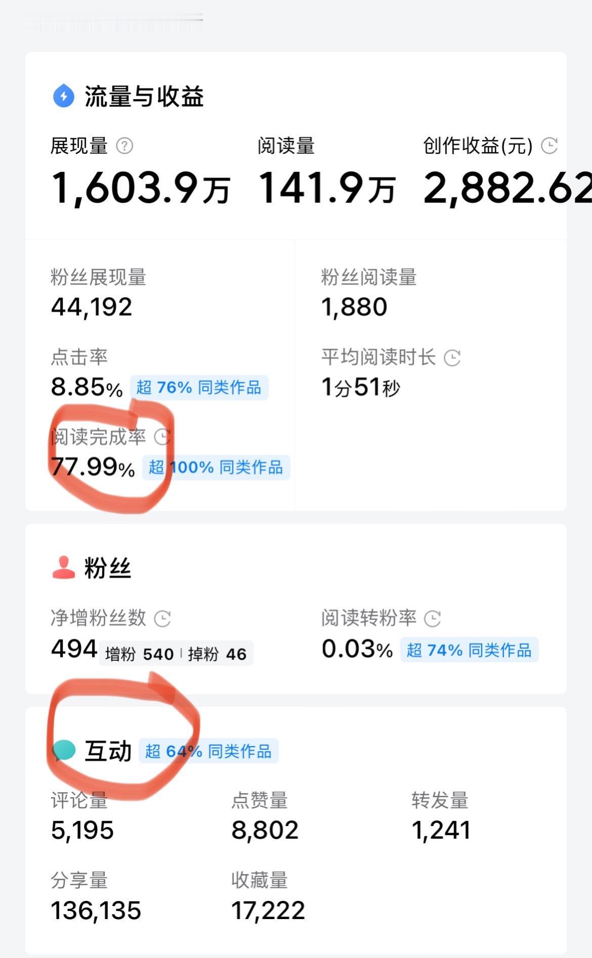头条的单价到底要怎么提高呢?我观察下来,和阅读完成率、互动有很大的关系。 很多头条作者都能敏锐地发现,互动的重要性。 所以经常评论回复,确实能提高内容的收益。 不过除此之外,文章如何能抓住读者的兴趣点,如何勾起读者互动欲望,也至关重要。 不废话,直接上干货。 第一,吸引人的开头和标题。 现在是短视频时代,能有耐心看图文的人,已经不多了。如果标题和开头不吸引人,就算你后面写的再好,也很少有人愿意去读。 第二,文章要有爆点,不管是有的还是无意,一定要有矛盾点,这样才能激发读者的互动热情。 第三,不要盲目追求内容长度,文笔不一定多好,但一定要精炼。 这一点直接影响到内容的阅读完成率,可谓至关重要。 打字不易,觉得有用的话,点赞收藏。