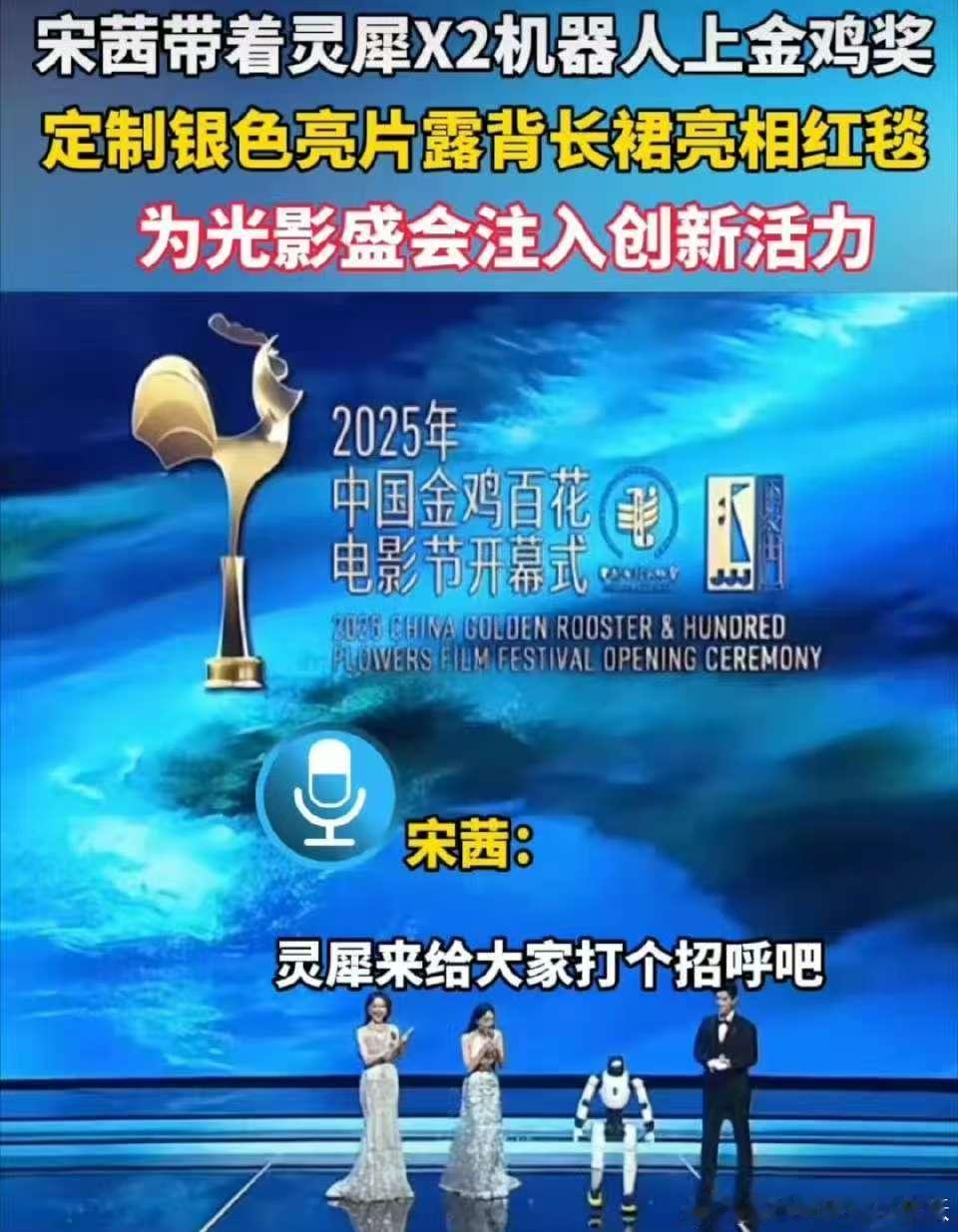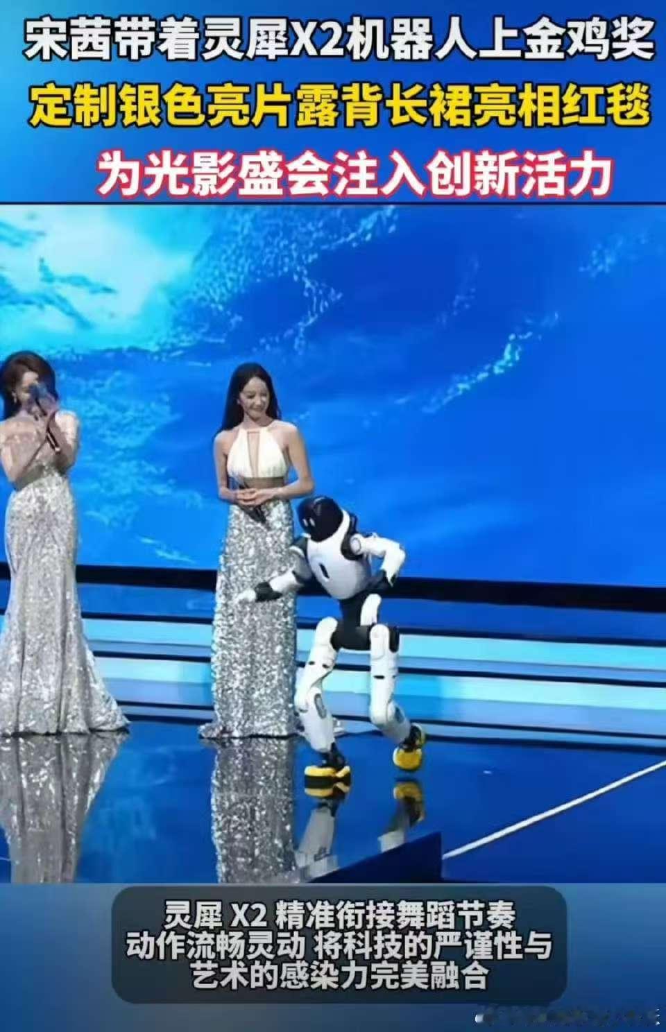 宋茜的金鸡推介舞台藏着大惊喜!灵犀X2机器人全程在线 营 业,跳舞、卖萌、对话样样行,既展现了国产科技的硬核实力,又让开幕式充满新鲜感,这波操作太会了!