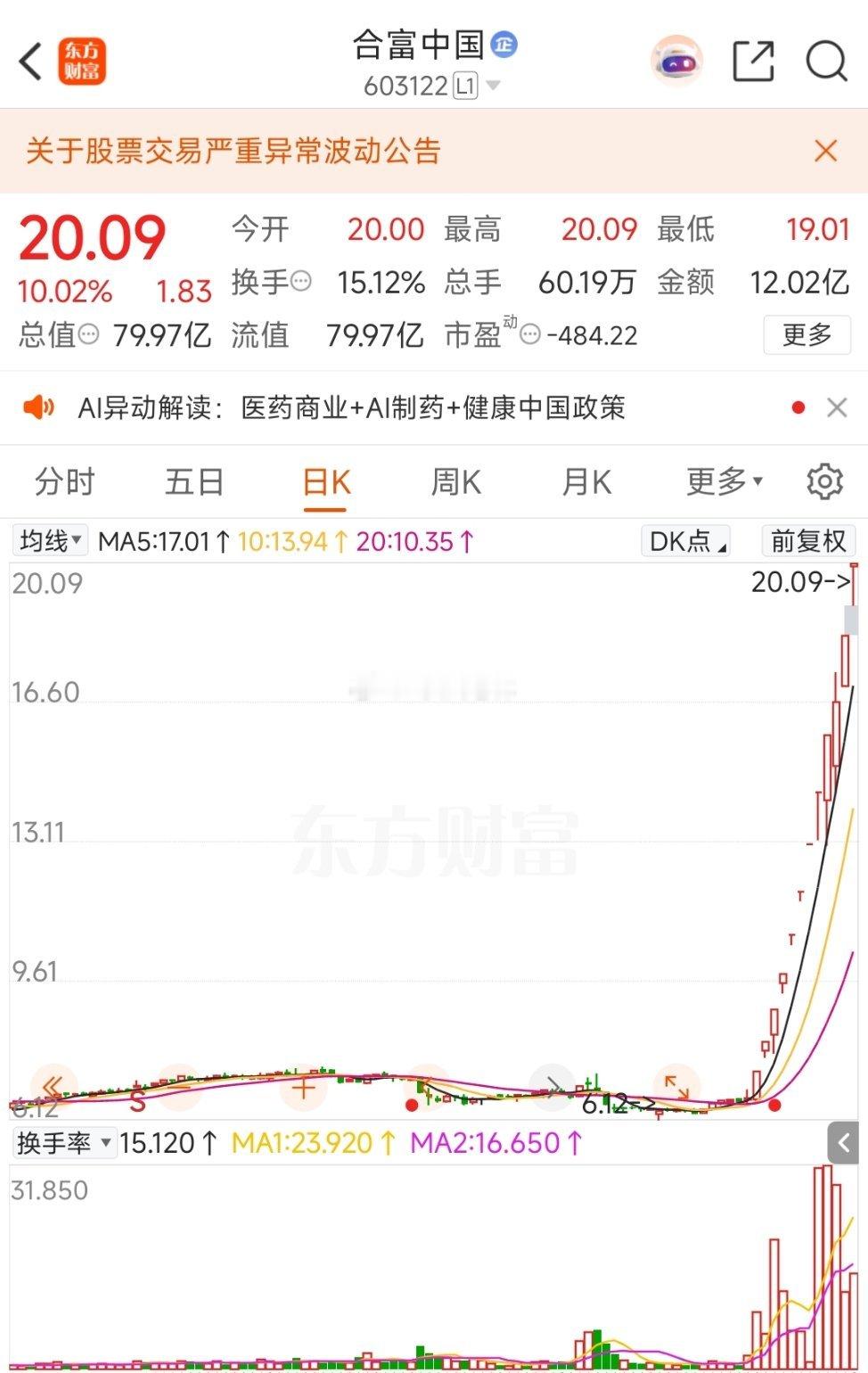 合富中国又涨停了!这是一只最大的跨年妖股,之前股民认为陈小群接的就是顶,令所有股民傻眼的是,陈小群进的价根本不是顶!居然顶上还有顶!14块20块,仍然不是顶!真的,炒股炒的是认知!炒的是勇气和胆量!饿死胆小,撑死胆大!