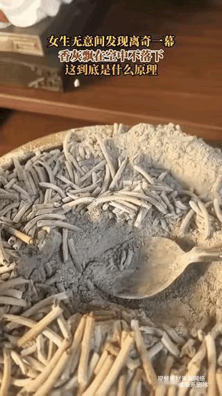 “彻底解释不清了!”江苏一女子无意间发现离奇的一幕!在香炉内烧完的香灰竟然飘在空中不落下,用勺子端了一下,重新松开,香灰又飘起来了!女子上网求助:“这是什么原理?” 其实这哪是什么“玄学”,多半是生活里那些没被注意到的小细节在“搞事”! 一开始刷到视频我也愣了,香灰怎么能悬在空中?直到有人说可能是蜘蛛丝,瞬间恍然大悟——之前我家阳台叶子飘着不落,最后才发现是细到看不见的蛛丝挂着。还有人提空气流动,想想也对,香炉里刚烧完有热气,加上屋里风小,极轻的香灰确实可能暂时“飘住”。 那些说“香灰成精”的明显是调侃,但也提醒咱们:生活里好多“怪事”,其实都是科学没跟肉眼“对上话”。比起猜玄学,不如多看看细节,说不定答案就藏在没注意到的蛛丝或气流里。你们以前遇过这种“看着玄其实很科学”的事儿吗?评论区说说~