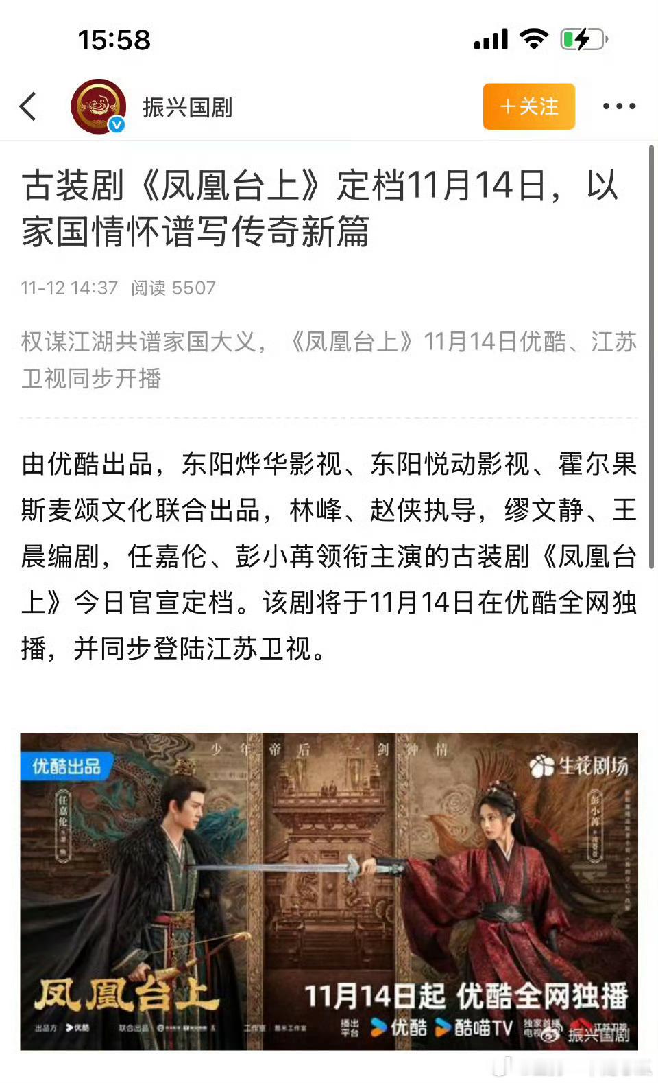 《古装剧《凤凰台上》定档11月14日,以家国情怀谱写穿起新篇》振兴国剧如是说!
