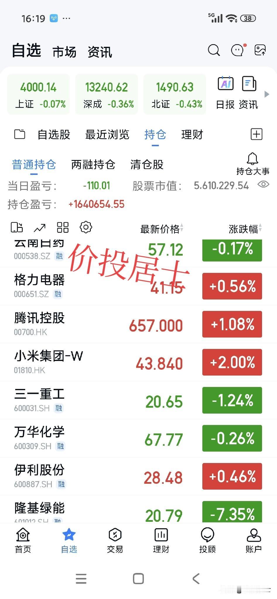 这会港股收盘了!今天的A股3563家下跌,1758家上涨,感觉今天的A股都好像是光伏带头给砸下去的[笑哭]当然这里也就是开个玩笑! 这在牛市里其实都非常正常,暴涨暴跌往往意味着筹码的充分博弈与交换。不怕某些板块它暴涨暴跌,就怕某些板块波澜不惊! 显然大盘现在围绕着4000点开始加大振幅洗盘了!大家要习惯这种牛市里洗盘的节奏! 港股里腾讯明天发布三季报,但是不知道财报今晚能不能提前出来,个人觉得腾讯的三季报大概率依然是超预期的。