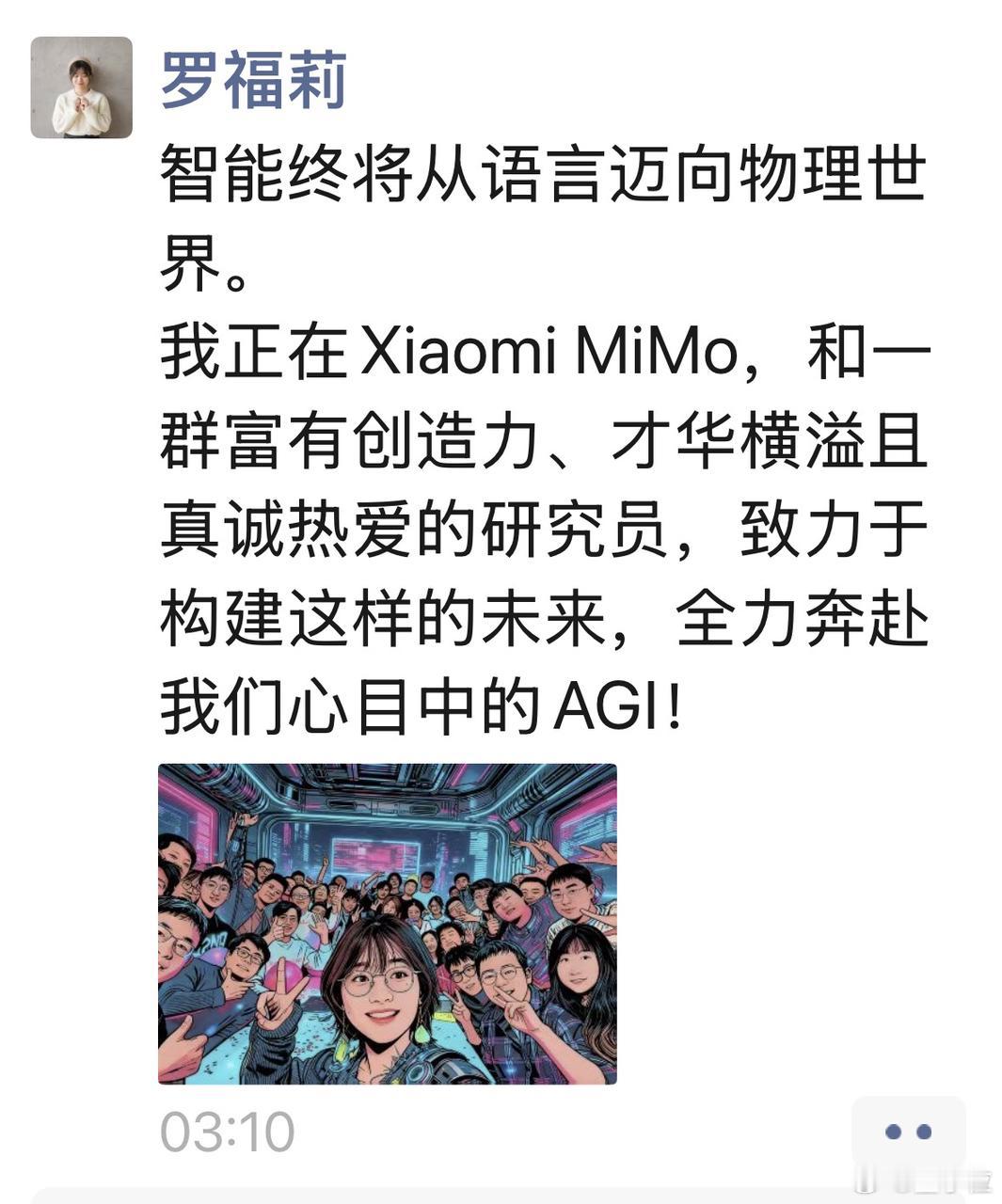 传闻终于成真。罗福莉宣布正式加入小米,出任MiMo团队负责人。而这一幕,其实已经被业界翘首以盼了整整一年。去年年底,DeepSeek发布V3并开源的次日,小米就被曝出正在组建GPU万卡集群。随后是雷军在跨年直播中宣布要进军AI深水区,再到坊间传出千万年薪挖角DeepSeek核心开发者的消息。上个月小米的最新论文中,罗福莉已以独立研究员身份出现。这些线索连起来,就是今天的官宣。那么罗福莉是谁呢。北京师范大学本科,北大计算语言学硕士,曾在阿里达摩院担任机器智能实验室研究员,开发过多语言预训练模型VECO,后加入DeepSeek参与V2等模型的研发。目前学术论文引用超过1.1万次,仅今年一年就新增了约8000次引用。她在DeepSeek最新的Nature封面论文中也有署名,但之前一直以北京独立研究员的身份示人,多数人猜测是为了规避竞业协议。罗福莉的官宣内容指向了一个共同的方向:空间智能。她在宣言中提出,智能进化必然从语言世界走向物理世界,要解锁具备感知、推理、生成与行动能力的多模态空间智能,这是实现通用人工智能的关键一步。巧合的是,就在昨天,AI教母李飞飞发表了万字长文(),首次系统阐释空间智能的概念和意义。而小米MiMo这支团队已经在这个方向上有所布局。MiMo是小米大模型Core团队推出的首个推理型大模型,目前正在将推理范式扩展到Agentic。团队同时在推进视觉语言模型MiMo-VL和语音领域的MiMo-Audio两条线。根据招聘信息来看,7B的小模型可能只是试水,接下来计划做百亿、千亿乃至万亿参数级别的大模型,要和GPT-4、Gemini Ultra这个量级竞争。目标是构建能听、看、说、想的统一多模态基座,实现从语言智能向世界智能的跃迁。至于实现路径,小米打算通过架构优化加芯片设计,来推动端云边的协同部署。MiMo隶属于小米大模型团队,2023年成立,栾剑担任负责人。雷军这次找来罗福莉,很可能是要为这支团队打上一个学术和研发的强心针。