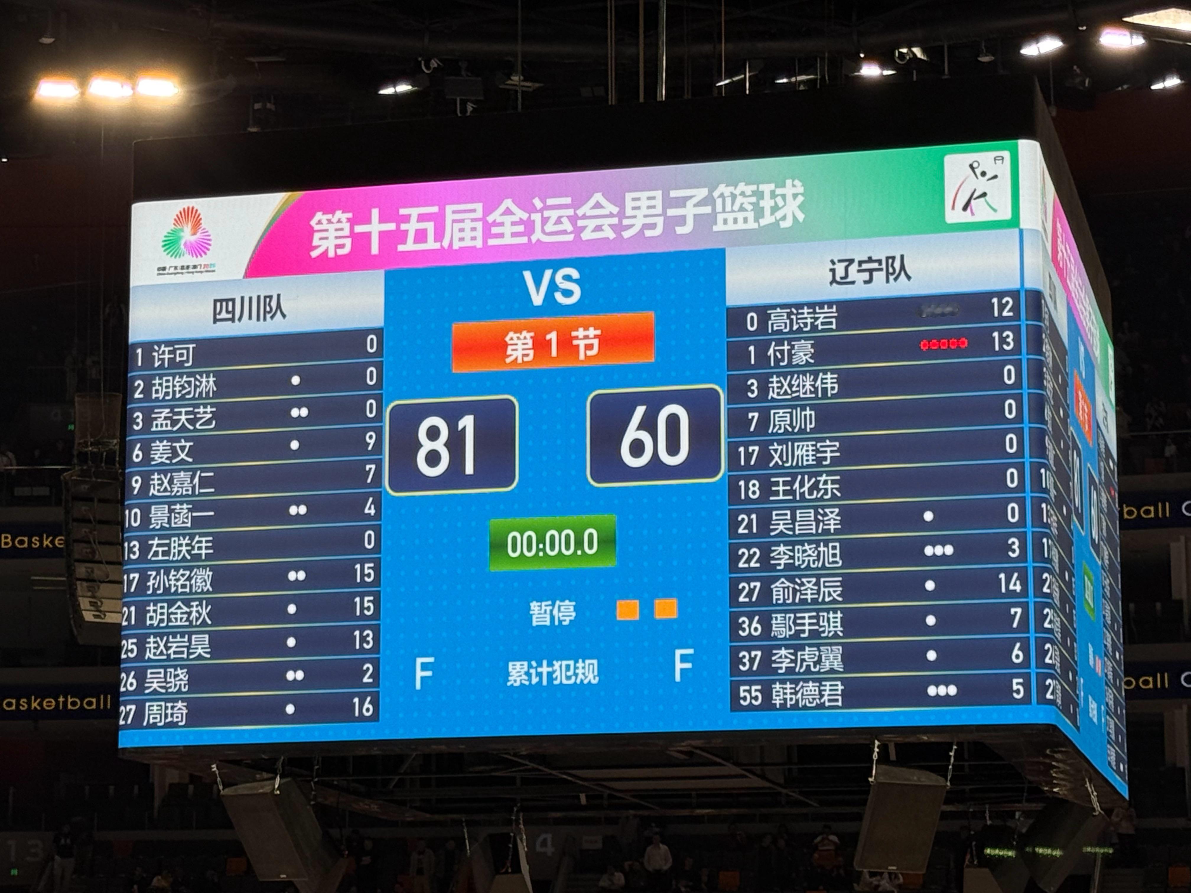 四川全运男篮81-60击败辽宁,获得本届赛事第三名