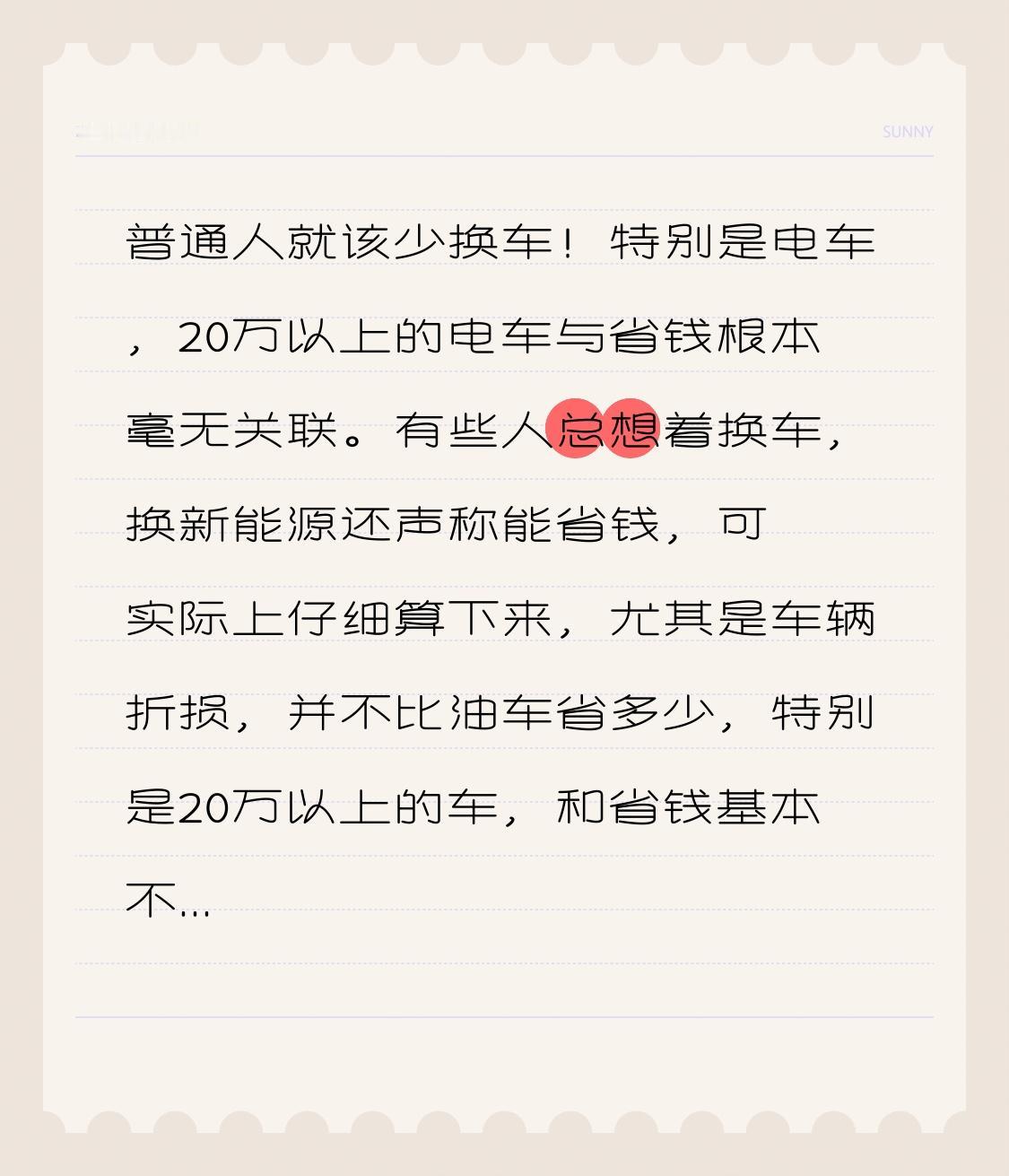 普通人就该少换车!特别是电车,20万以上的电车与省钱根本不沾边!电车用车感受 有些人总想着换车,换新能源还声称能省钱,可实际上仔细算下来,尤其是车辆折损,并不比油车省多少,特别是20万以上的车,和省钱基本不搭边。 普通人的车主要用于代步,其实没必要买太贵的,好用耐用就足够。毛病少、开销少,就是好车。要是频繁换车,再多的钱也难以存下,还会增添自身的负债,但是工作不稳定,还有家要养,这些都要花钱的。
