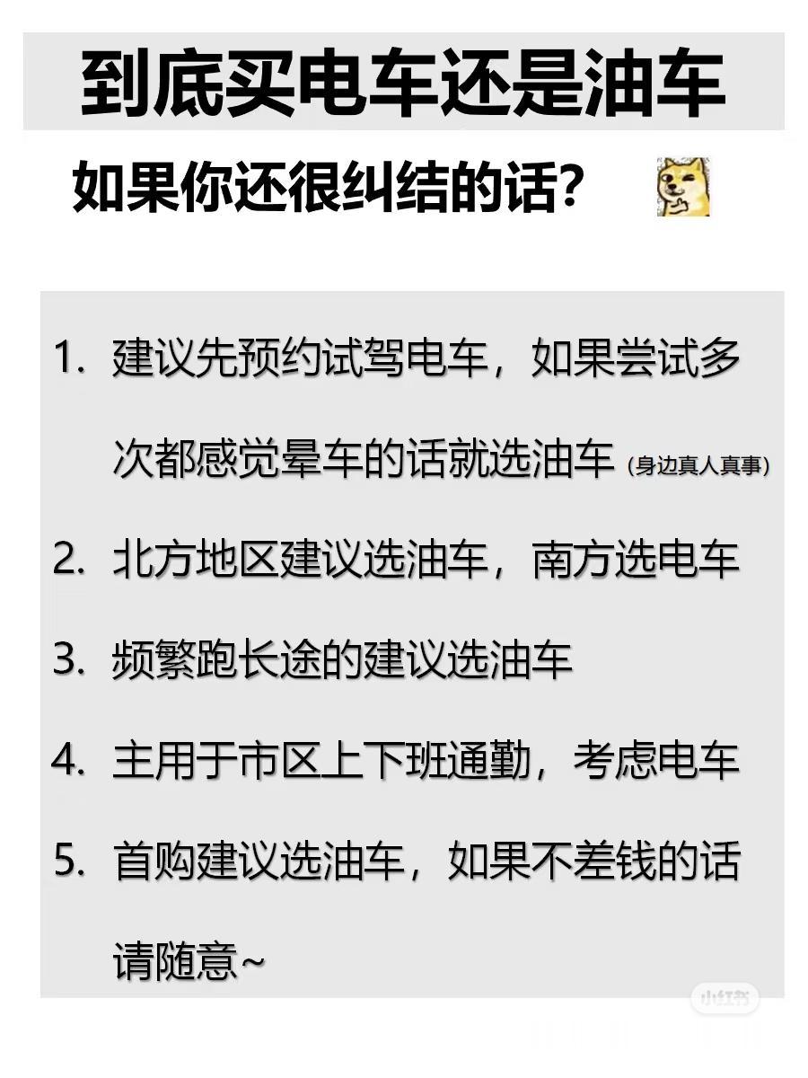 2025 年油车 VS 电车选购指南|300 字教你精准决策! 2025 年油车电车之争进入白热化,但两者并非对立,关键看你的需求匹配度!结合政策、成本、场景三大维度,整理这份避坑指南👇 💰 经济性对比 ✅ 电车优势明显:家用充电桩成本仅 0.1-0.15 元 / 公里(宁乡低谷电价 0.3 元 / 度),年均 2 万公里可省 8000 + 油费!保养周期长(年均 500 元),电池质保普遍 8 年 / 15 万公里。叠加湖南置换补贴最高 2 万元,20 万级电车落地价直逼油车。 ⚠️ 隐藏成本:保险比油车贵 20%-50%,高端车型电池更换成本 6-15 万(但终身质保车型可忽略)。 ✅ 油车胜在稳定:宁乡 92 号汽油 7.21 元 / 升,百公里油耗 7 升约 50 元,年均 2 万公里油费 1 万 +。保养成本年均 2000 元,但 5 年保值率 50%-65%,适合 3-5 年换车用户。 🚗 场景适配性 📍 城市通勤选电车:宁乡主城区充电桩服务半径 1.3 公里,商场、医院全覆盖。电机瞬时扭矩带来丝滑加速,智能座舱 + L2 + 辅助驾驶让堵车变享受。推荐比亚迪汉、特斯拉 Model 3。 📍 长途刚需选油车:加油 5 分钟续航 1000 公里,全国 4 万 + 加油站无焦虑。适合常跑高速或乡镇充电盲区的朋友,推荐丰田凯美瑞、大众迈腾。 ⚡ 技术趋势与政策 🔋 电车技术突破:固态电池量产(续航 1000 公里 + 快充 10 分钟),宁德时代神行电池 - 30℃续航不缩水,安全性通过新国标严苛测试。 ⛽ 油车政策收紧:双积分政策倒逼车企涨价,北上广深试点禁售燃油车,但宁乡暂未实施。油车技术天花板显现,智能化升级空间有限。 📌 决策建议 首购家庭:安装家用桩 + 年均 2 万公里以上→闭眼入电车(比亚迪海豹、小鹏 P7)。 第二辆车:增购微型电车(五菱宏光 MINI)+ 保留油车,短途代步 + 长途无忧。 北方用户:-10℃以下慎选纯电,增程式 / 插混更稳妥(理想 L7、问界 M5)。 预算敏感型:10 万级油车(轩逸、朗逸)保值率更稳,5 年后置换新能源车更划算。 试驾 Tips:重点体验电车的静谧性和油车的操控感,关注电池质保条款和充电便利性(宁乡居然之家、坝塘镇等均有快充站)。2025 年不是非此即彼的选择题,而是需求与技术的精准匹配!关注我了解更多选车用车干货💡【来自懂车帝车友圈】