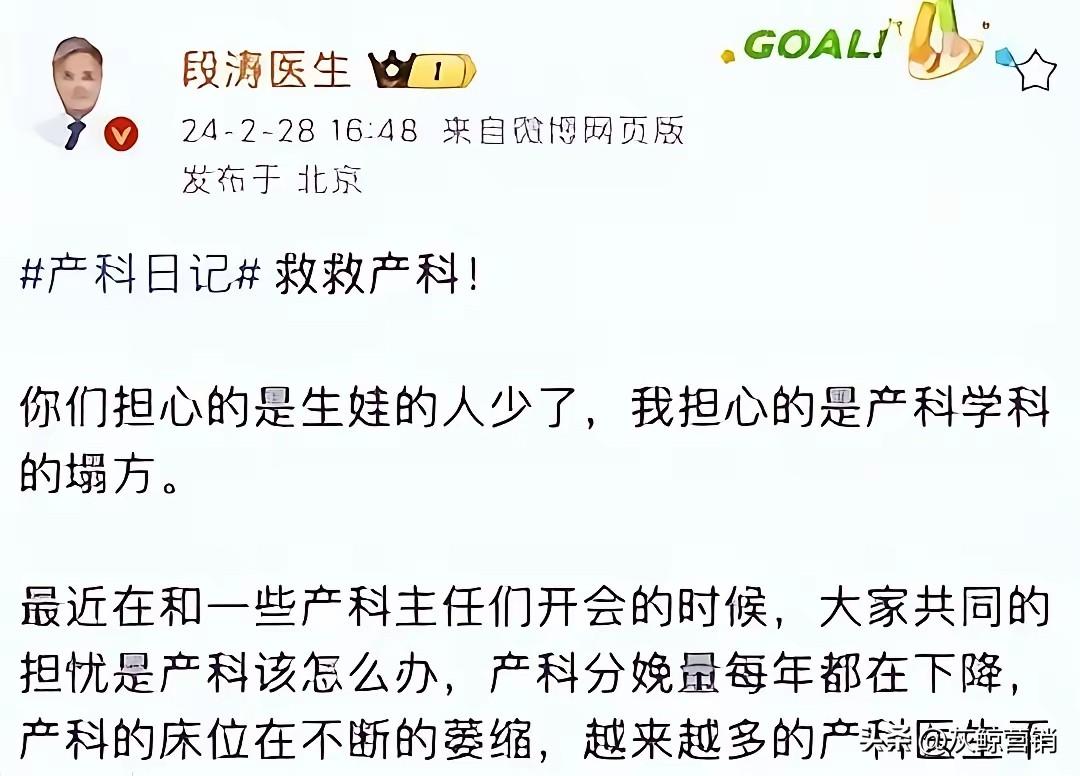 产科医生一天接不到一个生孩的。焦虑啊,这样下去得关门失业了! 这是一位产科医生的焦虑不安。未来随着人口的下降,消费的下降,消费就更少了。 不出10年,看吧,医院得减少,学校也得减少,相应的工作人员也得减少了! 需要经济发展,才会有更多的就业!