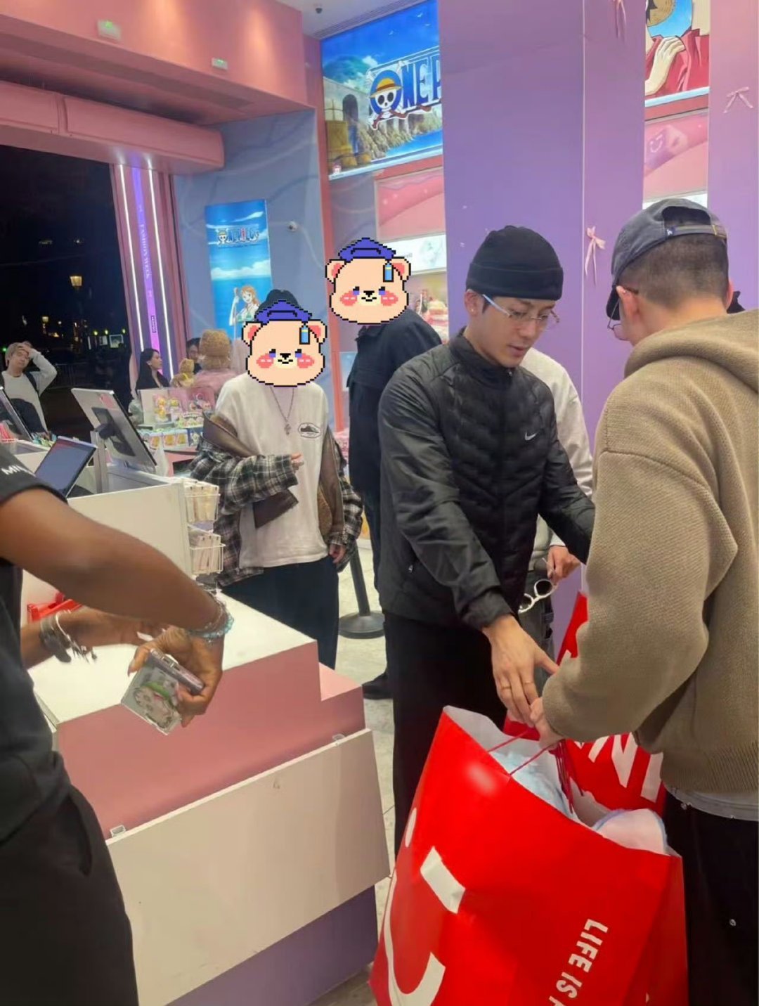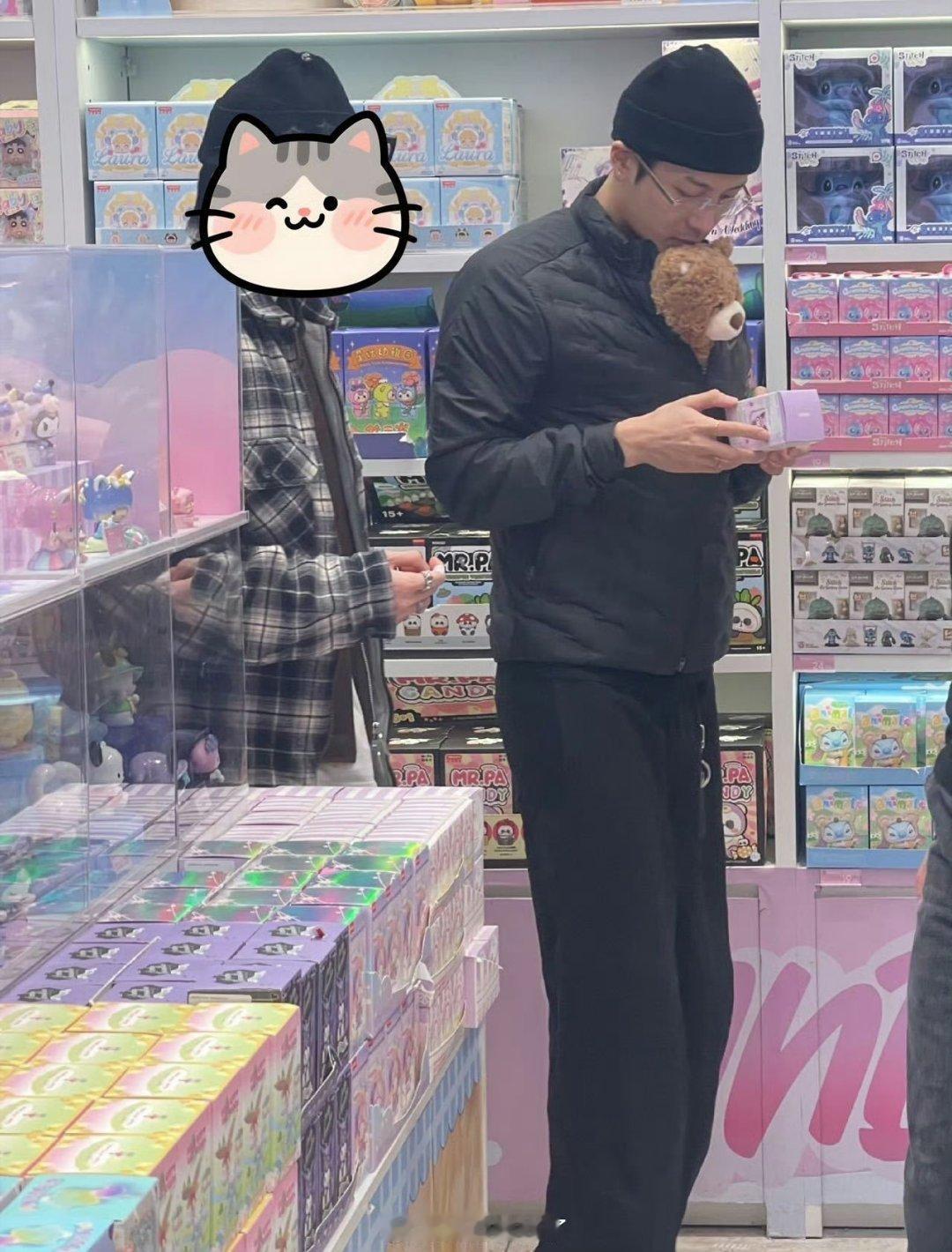 谁懂啊!舞台上酷拽的Jackson,在巴黎名创抱着一堆玩偶结账,水灵灵的样子像陪女友逛街,萌感与苏感齐飞,这波真的想谈!