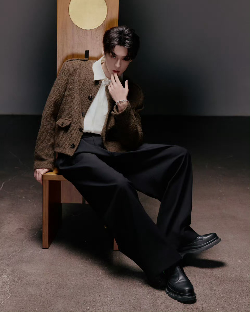 田栩宁格调自成,谁懂阿栩这身美拉德小香直播look的帅气值呢,期待住待会的直播的见面啦!