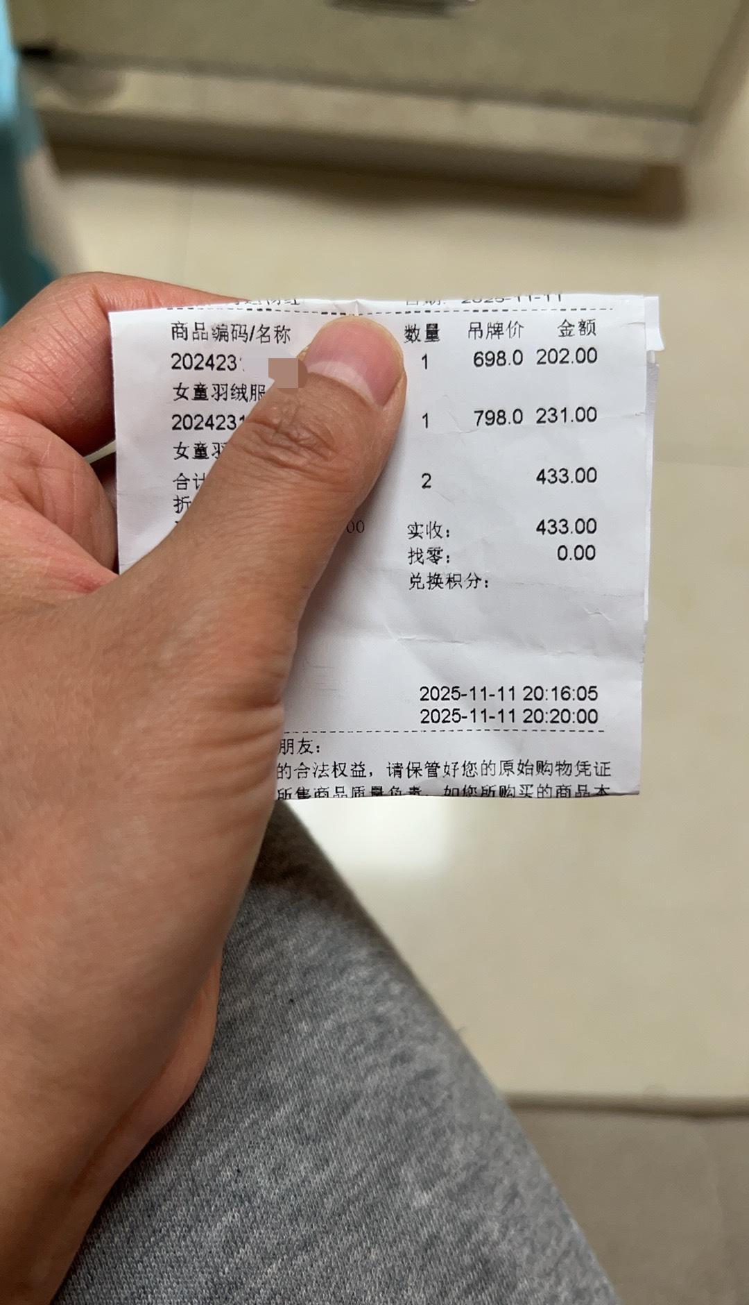 当妈的衣橱永远空着,孩子的衣柜却堆到天花板。 羽绒服两百出头,挑了两件,大娃的没买——不是不爱,是知道他还能穿。 双十一家家都剁手,咱家剁的是孩子脚上的鞋,不是自己的口红。 衣服没穿烂,只是穿腻了,这道理,大人懂,孩子也懂。 省下的钱,能多买一箱牛奶,多添一床棉被,值。 不是没钱,是钱得花在刀刃上——那刃,是娃的冬天,是妈的沉默。