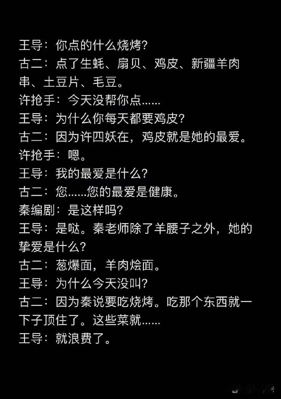 古二点外卖的录音,听了好窒息!王家卫、秦雯、许思窈哪是把古二当成了助理,分明是当成奴隶在使用,此时此刻,突然就想起了赵丽蓉老师的那句话,“那整一个旧社会。” 许思窈爱吃鸡皮,秦雯的最爱是羊腰子,两位编剧的品位真是与众不同,其实也对,品味越独特的人就越难“伺候”,之前王家卫的品位,不就是港圈最独特的吗?