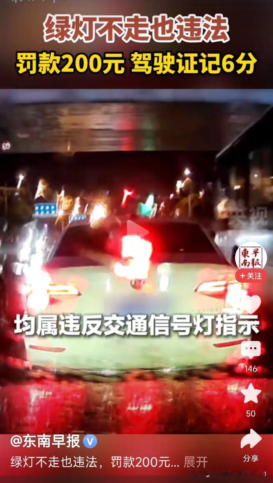 惊呆了老铁! 只知道闯红灯违法,现在绿灯亮了不走,照样罚你没商量! 罚款200