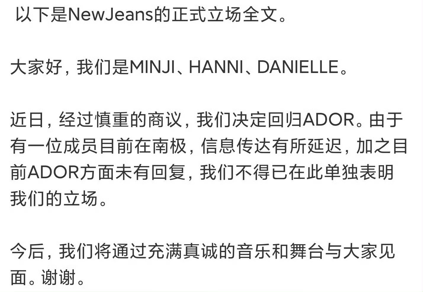 ADOR内部难以立即接受NewJeans另外三人回归声明ADOR内部也弥漫着难以