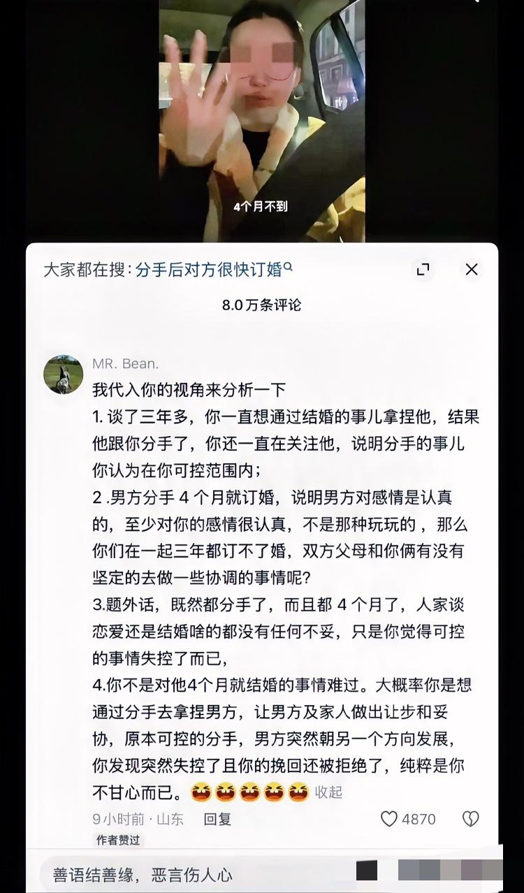 真的要笑不活了!刷到个视频,女生哭着吐槽前男友“无情”,结果越看越觉得是她自己拎不清。 俩人谈了三年,所有开销都是男方扛,女生备考公务员还没上岸,心态先飘了,嫌男方家境差配不上自己,主动提了分手。本以为男生会哭着求复合,结果人家六月分手,九月订婚十月结婚,完全没按她的剧本走,女生直接破防哭诉。 其实感情里最可笑的就是“自我感动式优越感”,你把别人的付出当理所当然,还觉得人家离开你就活不了。人家真心待你时你不珍惜,等他转身拥抱幸福,你倒成了受害者? 成年人的恋爱,好聚好散是体面,别把自己的傲慢当成对方的执念,不爱了就放手,人家过得好是人家的本事,没必要反过来道德绑架。恋爱 分手
