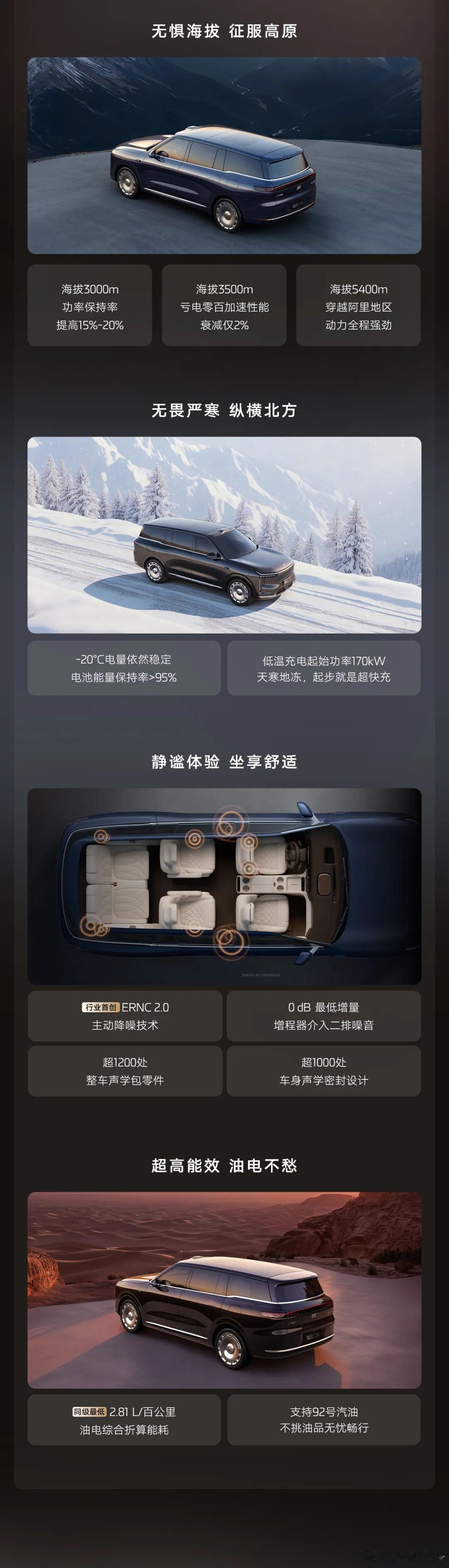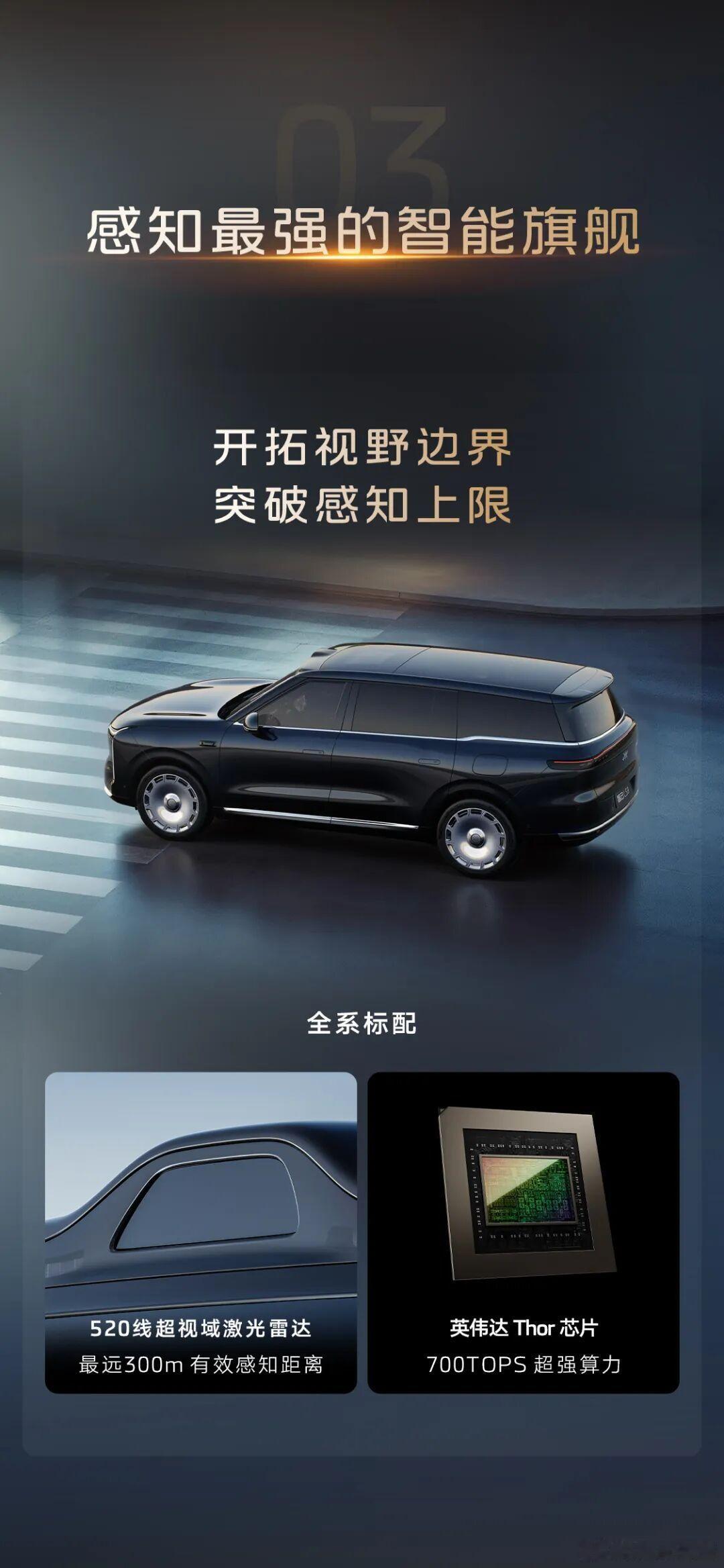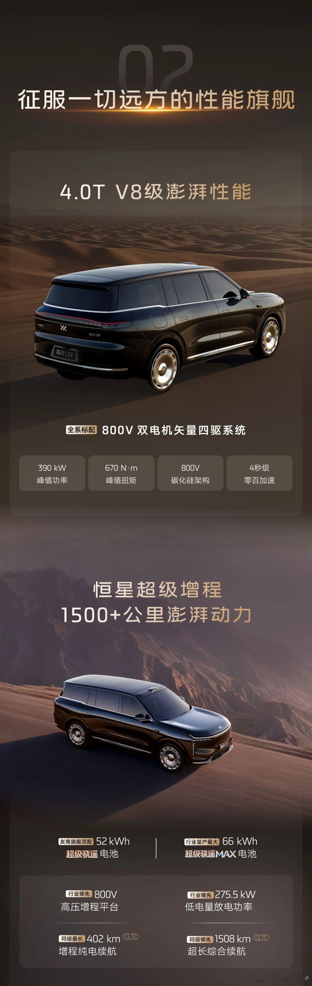智己LS9震撼上市,32.28万元起智己LS9于2025年11月12日正式上市,上市权益价区间为32.28-35.28万元,其主要产品信息如下 :车身尺寸:其长宽高分别为5279mm、2000mm、1806mm,轴距达3160mm,采用六座布局。内饰方面新车中控台搭载27.1英寸5K驾舱屏,副驾前方有15.6英寸娱乐屏。同时,车辆配备了Nappa真皮座椅,提供三把零重力座椅,还提供半辐和全辐方向盘两种造型。此外,该车配备12.3L双开冷暖冰箱,能提供-6℃至50℃温度调节。智驾方面,该车标配520线超视域激光雷达与英伟达Thor芯片,支持300米最远有效感知距离,具备L3级标准感知能力。智己LS9同时搭载全域融合感知系统,共配备28个高精度传感单元,可完成城区、高速等多场景智驾辅助。动力方面,智己LS9采用“恒星”超级增程系统,由1.5T发动机搭配电动机组成,配备66kWh电池组,系统综合功率为390kW。它拥有800V高压架构,CLTC工况下,其纯电续航最高为402公里,综合续航里程可达1508公里。