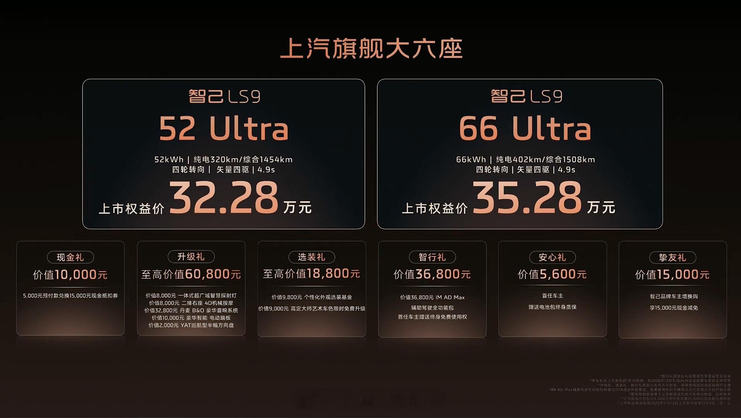 智己LS9上市25分钟,大定超过5000台,这个是大定的数量。确实,这个价格,这个配置,性价比已经十分到位了,再加上这些权益,属于一步到位了。