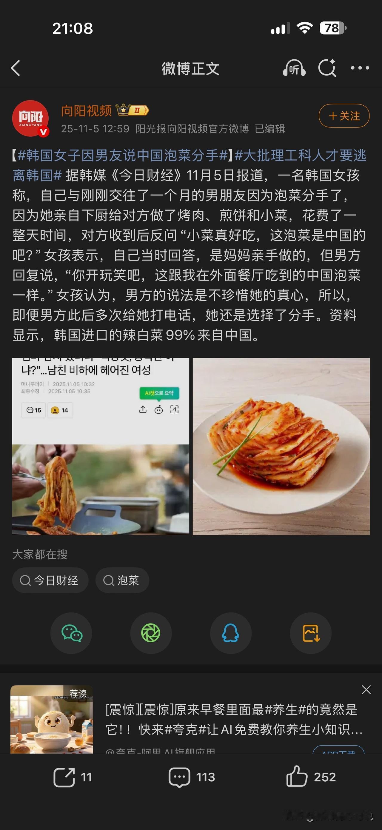 只因泡菜问题就被分手,我真的很佩服这哥们儿的勇气。事情是这样的,一中国哥们儿和一
