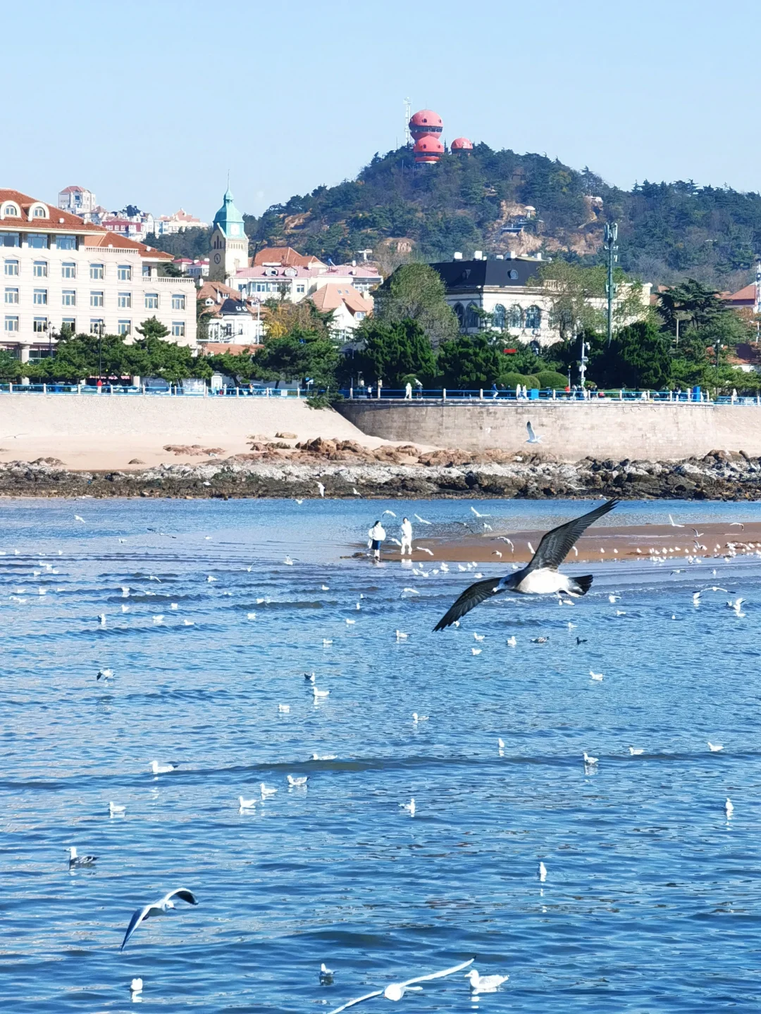 快来青岛体验不花钱的快乐叭~喂完海鸥可以去附近邮电博物馆,安娜别墅,教堂,大学路龙江路等等…下期会更新青岛必打卡的德国建筑~可关注一下哦!