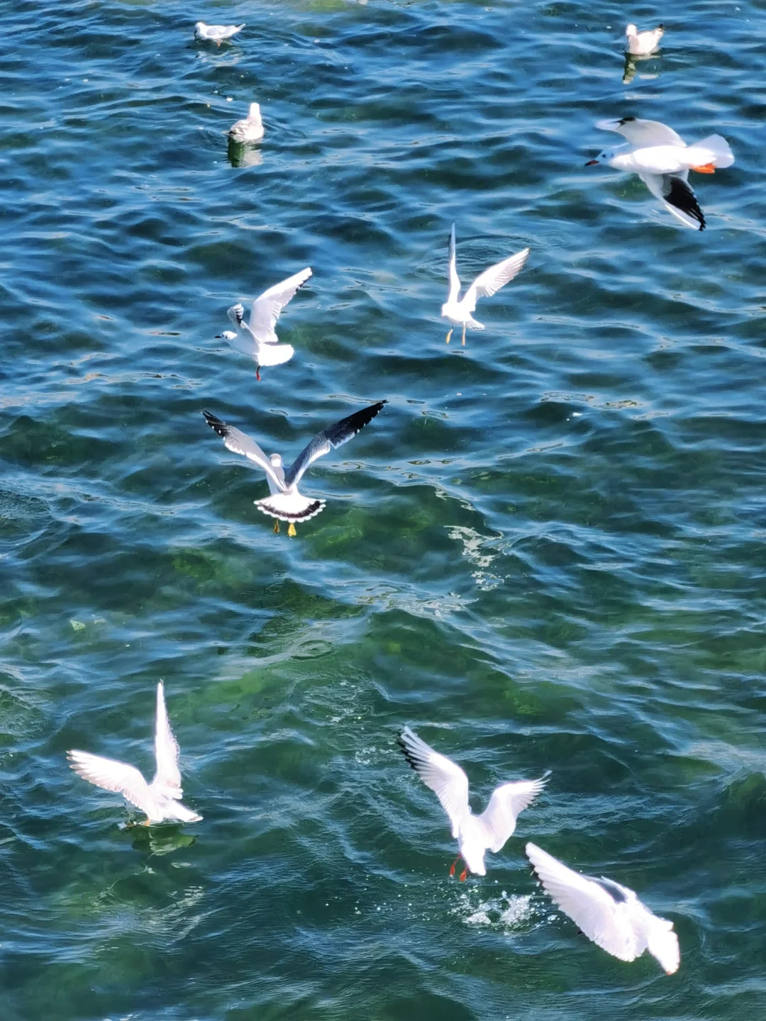 1⃣时间建议上午11点或下午2点到4点去拍,光线充足柔和~12点半到1点大部分海鸥吃饱了就会栖息海面上,拍不到群飞,入画面的海鸥也少~