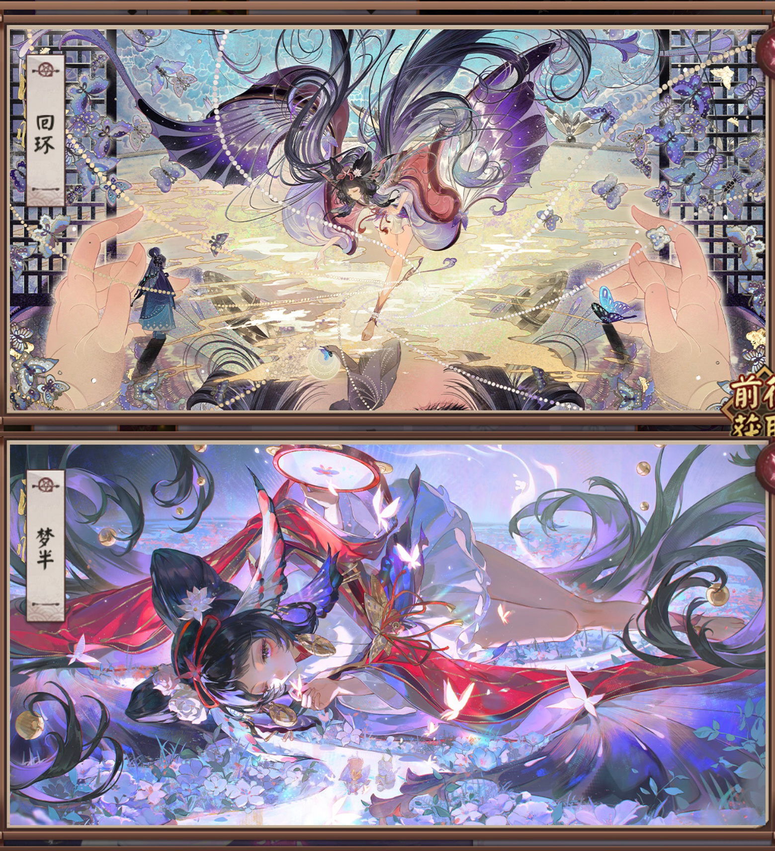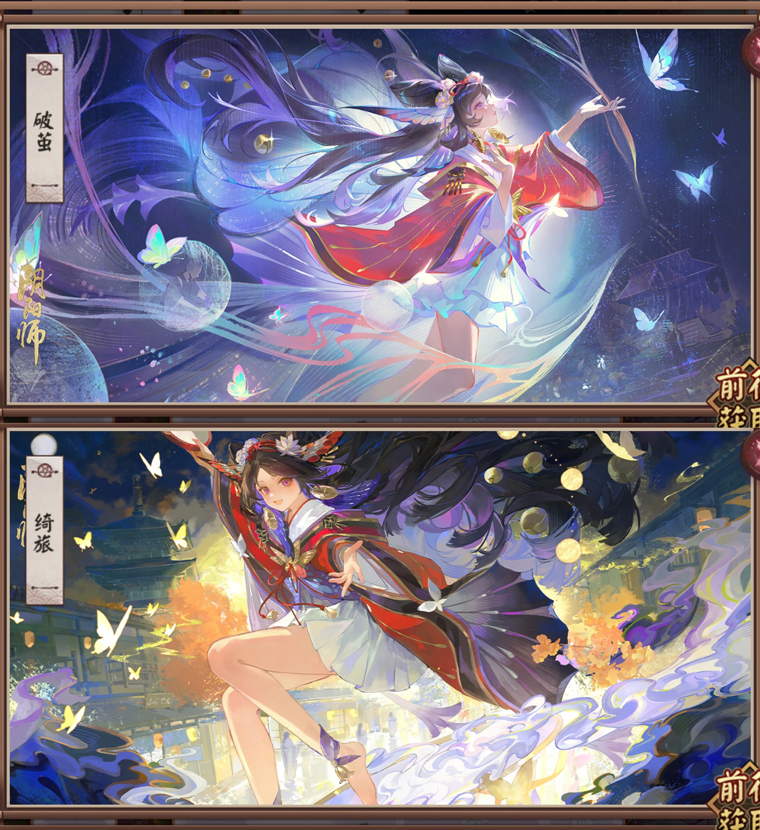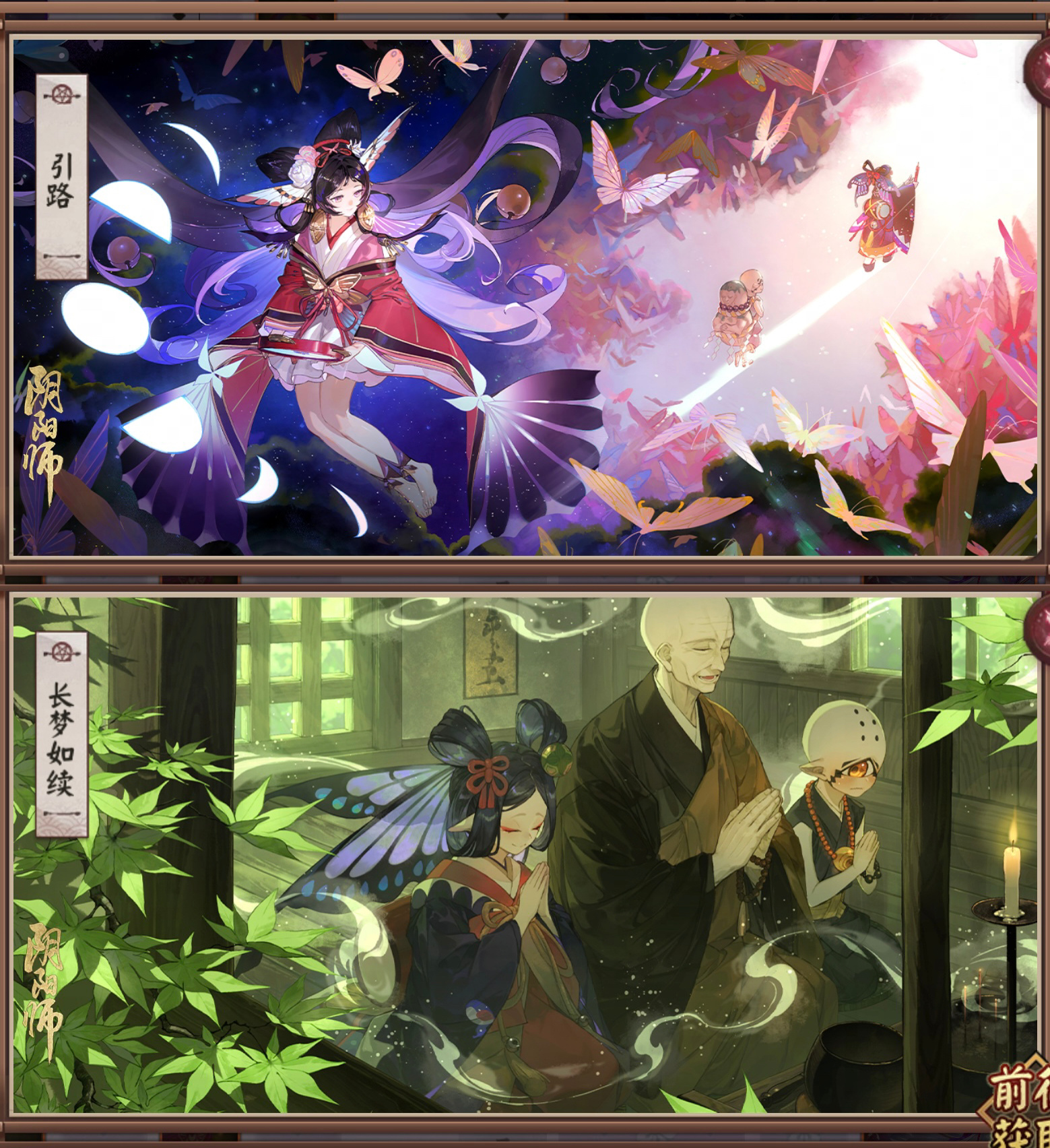 sp蝴蝶精新插画(8p)以及相关配套:小纸人皮肤/绘卷框/主题名染点触三件套。插画出现独眼小僧和老僧人真的很惊喜!让我重新回忆起「不可结缘」的故事-