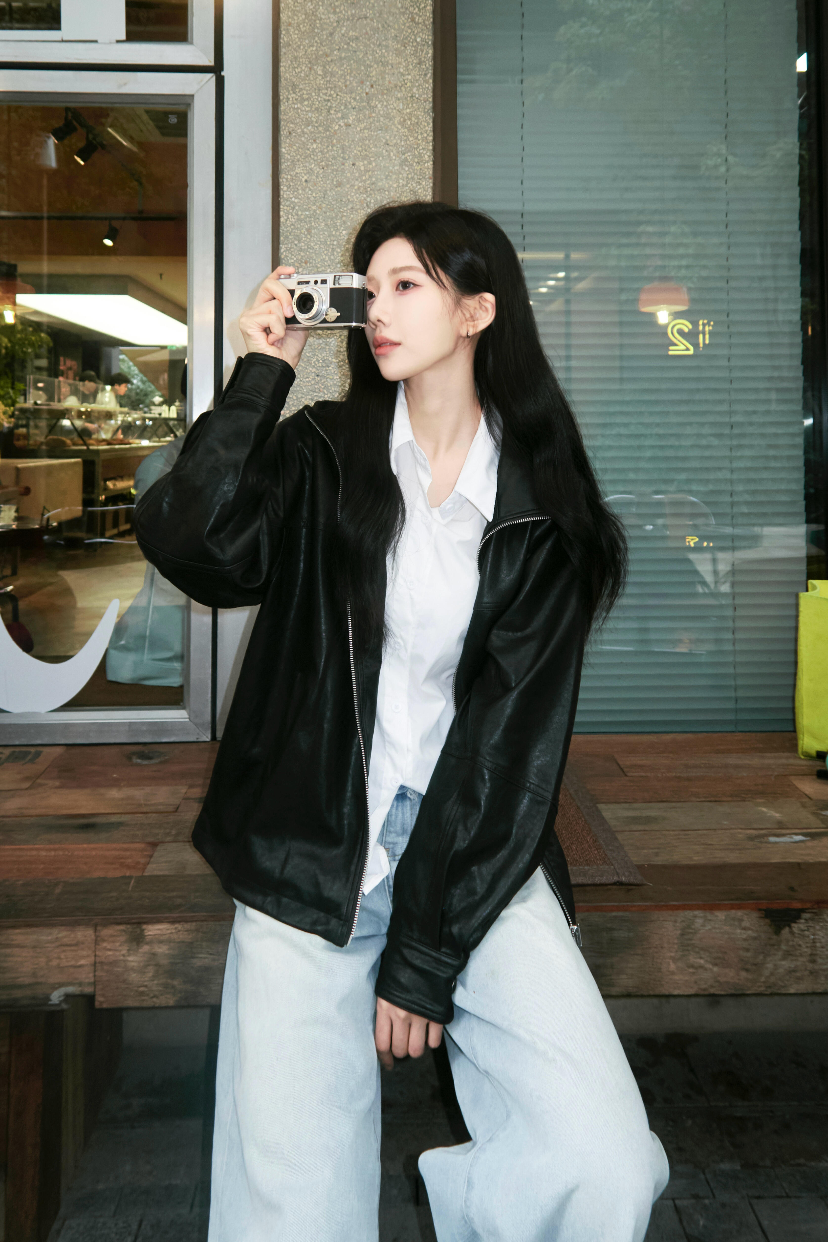 沈梦瑶🍠四宫格营业黑色皮衣look好漂亮~