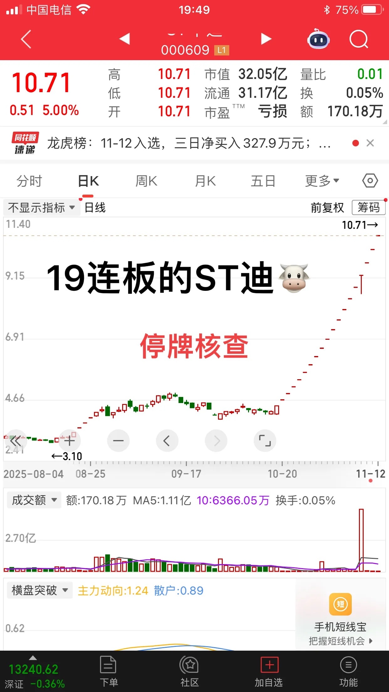 涨涨不休呀;ST迪神;19连板;现在被停牌核查