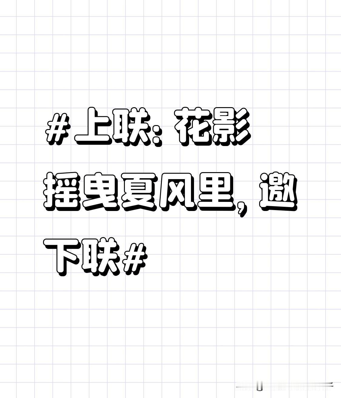 对联真是个超有意思的传统文化,就像这个上联“花影摇曳夏风里”,一下就把夏日那灵动又美好的画面展现出来了。温暖夏风吹着,花影晃动,仿佛花在跳舞。 对对联有很多讲究,得字数相等、词性相对、平仄相谐。有人对“竹声悠扬月夜中”,“竹声”对“花影”,“悠扬”对“摇曳”,很工整,还营造出不同的宁静画面。 我也想试试,对个“柳姿婀娜春水间”。“柳姿”对应“花影”,“婀娜”配“摇曳”,“春水间”和“夏风里”呼应,感觉描绘出春天柳树在水里摇曳的画面,和上联各有各的美。