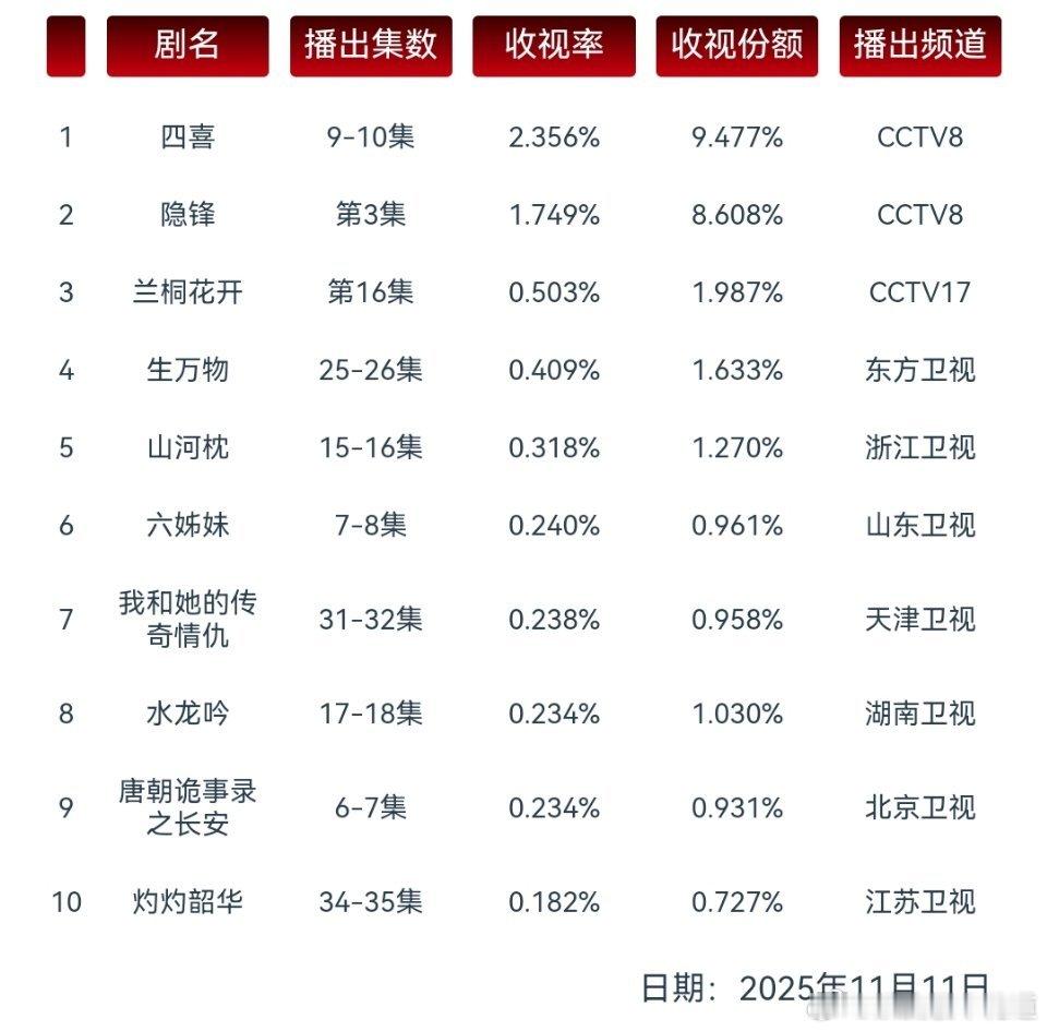 11月11日云合播放占比 唐朝诡事录之长安22.9%横盘了,随着下面几部剧的逐渐