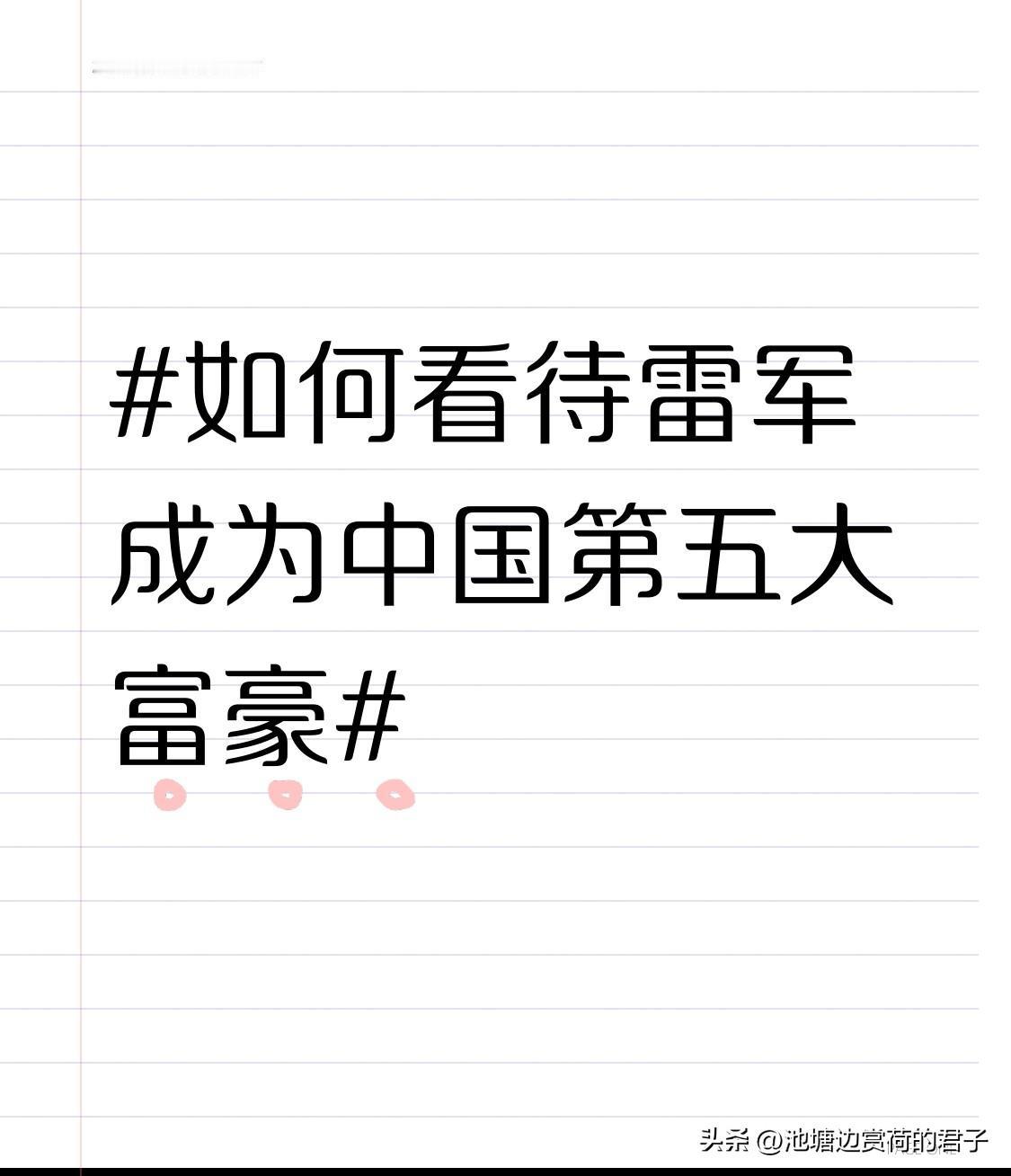 如何看待雷军成为中国第五大富豪 雷军成中国第五大富豪,真的是实至名归!2025年胡润百富榜,他以3260亿人民币位列第五,财富较去年增1960亿,增幅151%,成“财富增长王”。福布斯中国内地富豪榜他也排第七,还超了马云。 财富暴增靠小米汽车业务爆发、手机高端化突破和AIoT生态发力。2025上半年小米营收2272亿,同比增38%;净利润215亿,同比增70%。小米SU7等车上半年交付15.72万辆,成造车新势力前五。雷军押声誉进新能源车赛道,SU7和YU7系列表现抢眼,资本市场给小米高估值,带动他个人财富飙升。这就是实力的证明!